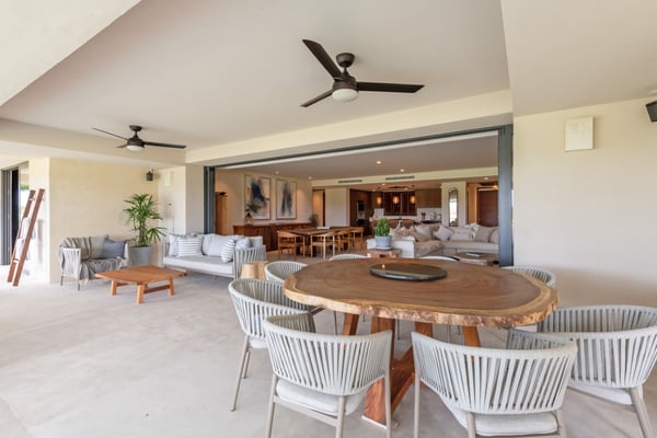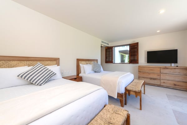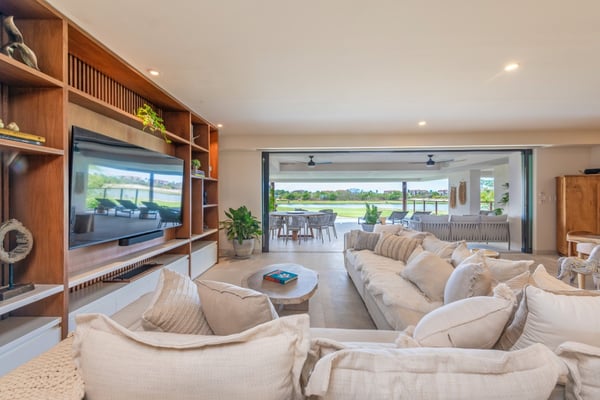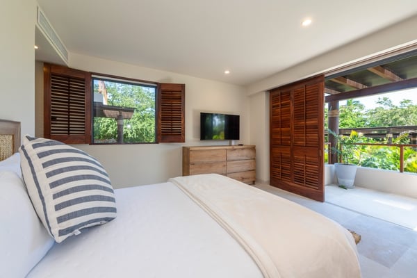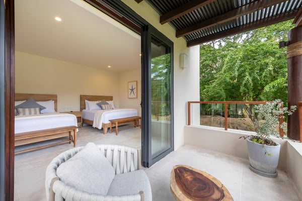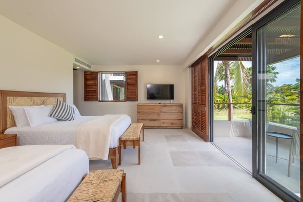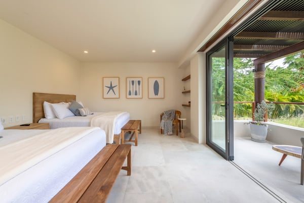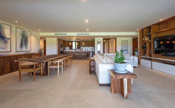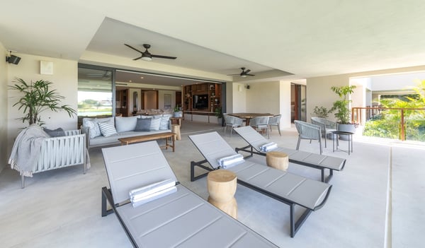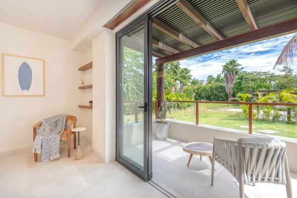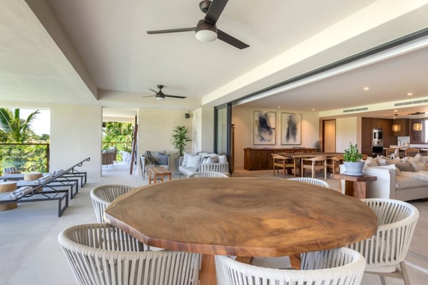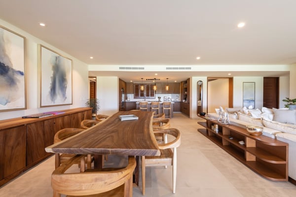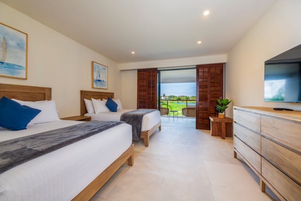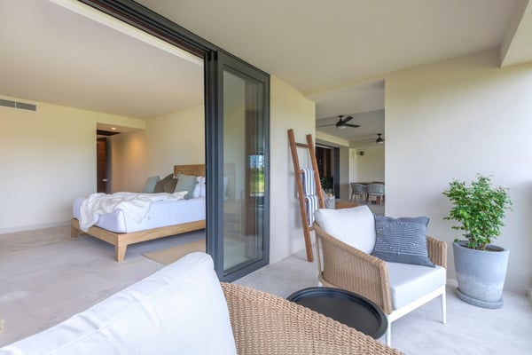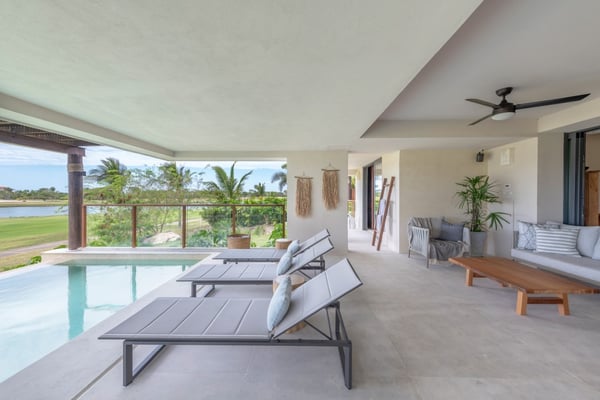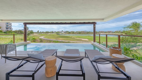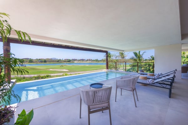 The Premier Golf Membership grants access to Pacifico Golf Course ($), Bahia Golf Course ($), the Tennis Centre ($), the Fitness Center ($), El Surf Club based on min. consumption fee ($), St.Regis Beach Club based on availability and min. consumption fee ($), Pacifico Beach Club, Sufí Ocean Club and Kupuri Beach Club. Contact one of our Villa Specialists for more information. Set within the exclusive Punta Mita community, this ground-level 4-bedroom condo overlooks the golf course, offering refined living spaces throughout. The thoughtful, open floor plan connects interior spaces to an outdoor terrace, complete with a private plunge pool and dining area. Each bedroom serves as a private sanctuary with premium amenities and scenic vistas.