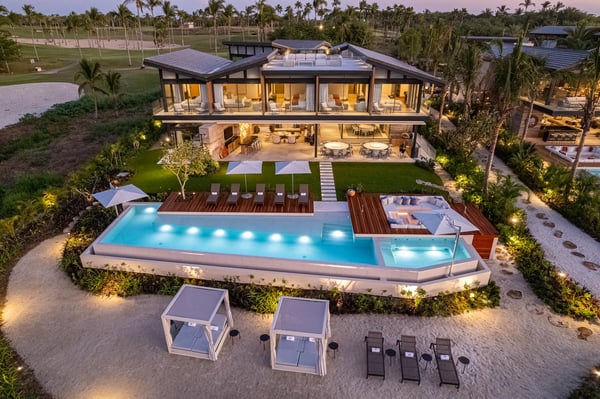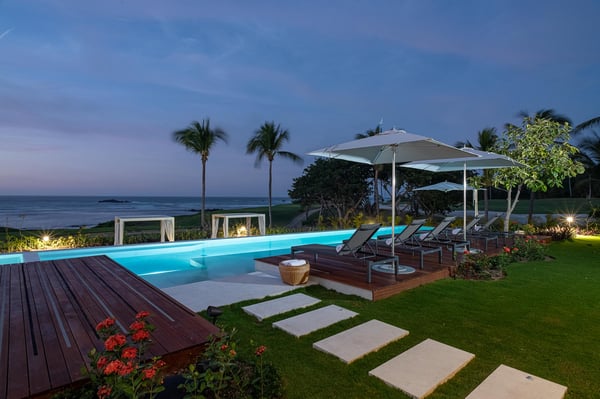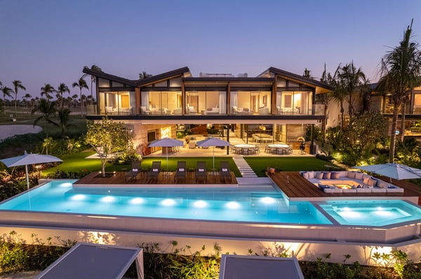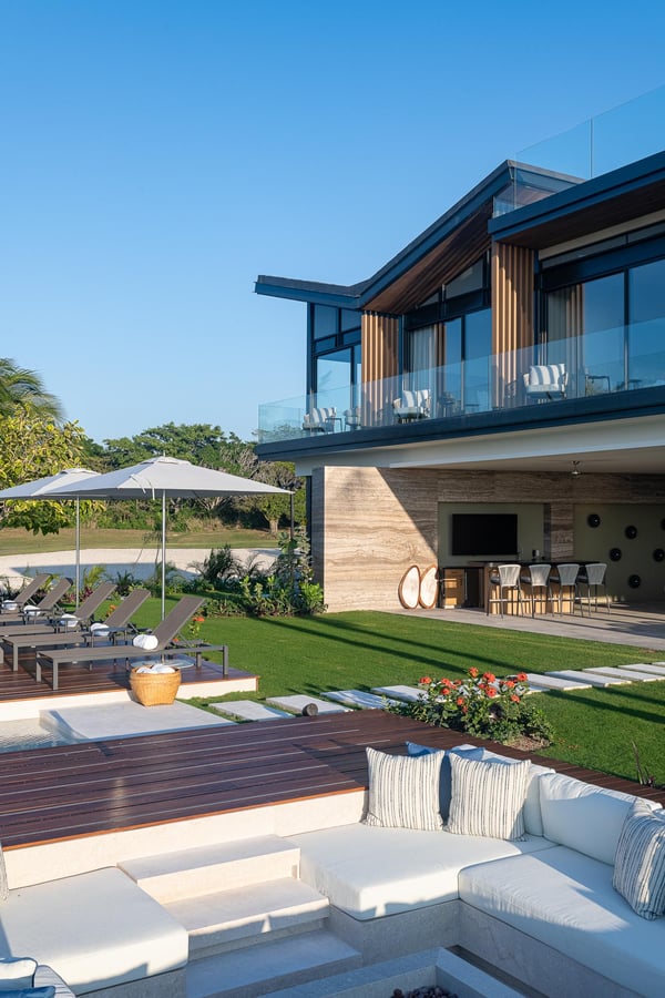 The Premier Golf Membership grants access to Pacifico Golf Course ($), Bahia Golf Course ($), the Tennis Centre ($), the Fitness Center ($), El Surf Club based on min. consumption fee ($), St.Regis Beach Club based on availability and min. consumption fee ($), Pacifico Beach Club, Sufí Ocean Club and Kupuri Beach Club. Contact one of our Villa Specialists for more information. Discover the epitome of luxury living at this exceptional 9-bedroom estate in Pacifico Estates, Punta Mita. Perched in-front of the golf course, it offers panoramic ocean views, including the renowned Tail of the Whale golf hole, this home promises an extraordinary experience. The expansive layout includes a pool with jacuzzi, 19th hole entertainment space, a fully outfitted gym, and even an elevator to ensure easy access to every corner of the property. Designed for entertainment, the estate boasts a state-of-the-art media room and a game room perfect for relaxation or fun-filled evenings. For larger gatherings, the estate can be paired with the neighboring property for special events. With spacious outdoor areas for al fresco dining and lounging, this estate provides an exclusive retreat while also being close to Punta Mita’s renowned beaches, golf courses, and fine dining.