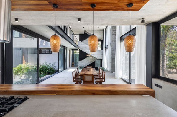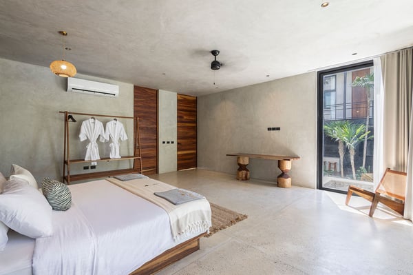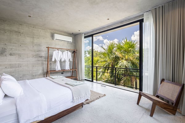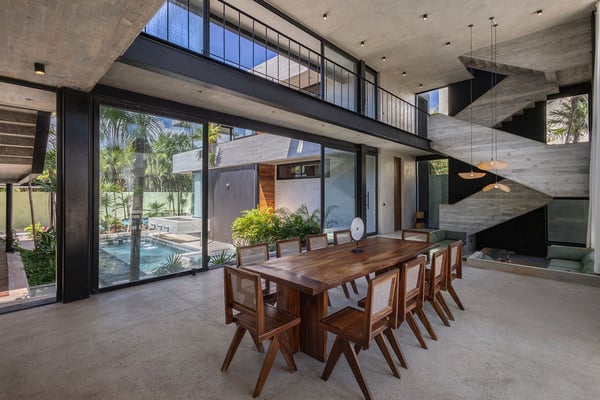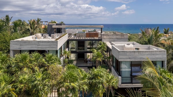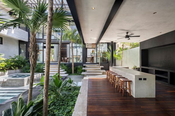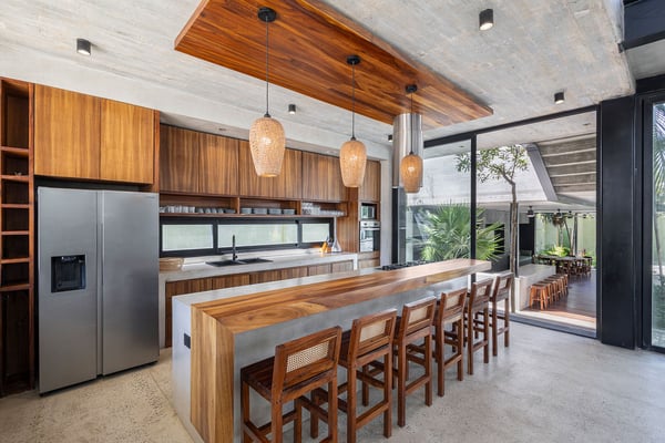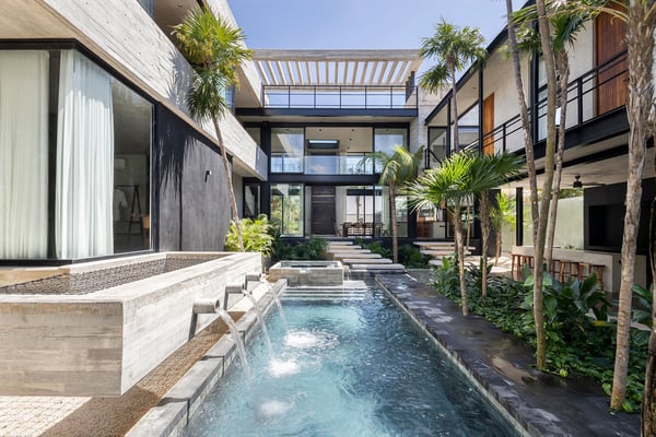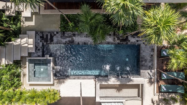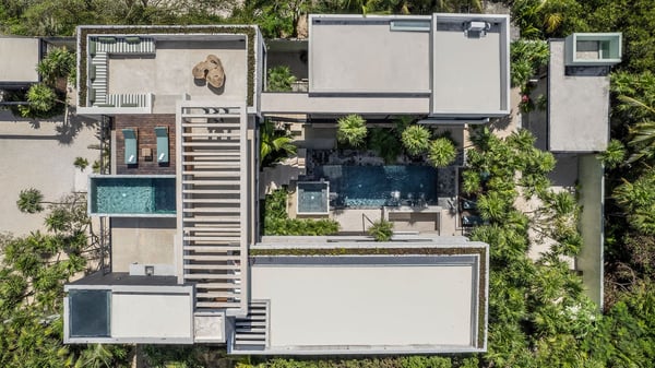 Casa Vihara is a place to slow down and enjoy life by the water. Set in a gated community with 24-hour security, this three-story villa offers privacy, space, and easy access to white sand beaches just a short walk away. With five bedrooms and open, sunlit spaces, it’s designed for travellers who want a mix of comfort and style. At the heart of the villa is the main-level pool, surrounded by loungers and a poolside bar—perfect for lazy afternoons under the sun. A shaded yoga area provides a peaceful spot to recharge, and as night falls, the heated pool glows, setting the mood for relaxed evenings with family and friends. For even better views, head to the rooftop terrace. A second heated pool overlooks the coastline, while the lounge and bar offer the ideal spot for sunset drinks or stargazing. A private chef is available to craft meals just the way you like them, and the open kitchen and outdoor dining area make every meal a special occasion.