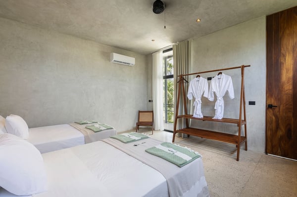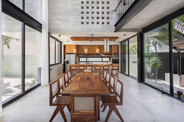 • Please note that the beach is rocky and water shoes are recommended upon entering the water * There is an entrance fee to the Biosphere Reserve of Sian Kaan that is not included in the rate. This fee is $12 USD per person per day and it’s paid at the entrance arch by cash • A security deposit of $2,000 USD may apply • A $1,000 USD food deposit is required prior to arrival or in cash at check-in • Rates are based on double occupancy • Additional guests exceeding double occupancy (11 – 12) are $100 USD + taxes per guest per night • Day passes are available at $100 USD per guest, per day *9am – 10pm • Children accepted • Pets accepted with prior approval *additional fees may apply • The villa has 4 full and 2 half bathrooms • Events welcome *Maximum 50 guests, please enquire direct for a quote • Strictly quiet hours in the community after 10pm (no loud music allowed) • Please be aware that, due to warming weather and fluctuating ocean currents, the Riviera Maya may experience the presence of naturally occurring seaweed during the hotter months of the year.