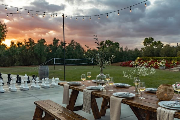Welcome to Maplethorn Hall! This 10 bedroom, 10 and half bath, 11,000 square foot estate mansion is located in the very heart of Temecula Wine Country and has everything you could ever want for your Wine Country vacation. The Manor features nine plush suites with in-room spa tubs, one extra guest room, and a 1,600 square-foot dressing area with beauty stations. Guests enter the Manor through an exquisite ballroom entrance into the Grand Salon that includes a 24-seat dining table, two large seating areas, chess table, poker table and large wet bar. The Manor's game room includes billiards, ping pong, shuffleboard, foosball and numerous board games. There are endless outdoor amenities to keep guests entertained: an outdoor pool with chaise lounges, a hot tub, patio grill and bar area, several fire pits and seating areas, life-size chess board, bocce ball court, horseshoe pits, beautiful gardens and enough grass space for family fun of all kinds. Enjoy an outdoor evening dinner under market lights on the expansive vineyard dining table! With everything you could ever want at your fingertips, Maplethorn Hall is your home away from home, plus more! Nearby Attractions: Wilson Creek Winery (www.wilsoncreekwinery.com), Lake Skinner Recreation Area, Temecula Wine Country (including 40+ wineries), Old Town Temecula (15 min drive), Grape Escape Balloon Adventures (Hot Air Balloon), Grapeline Wine Tours, Wine Country Trails by Horseback, Temecula Wine Country E-Bikes, So-Cal Sidecars Temecula (motorcycle sidecar tour), Pechanga Resort & Casino, Vail Lake, and several golf courses. Only a short drive from Los Angeles and San Diego, Temecula is a charming town with lots of character. Known for its upscale wineries and extensive vineyards, Temecula offers plenty of unique opportunities for those who appreciate the art of the grape and delicious food. Not a fan of wine? Worry not, this town has plenty of other attractions such as golf, hot air ballooning, farmers markets, and shopping. Temecula is also a hot spot for equestrians, with frequent horse shows and events at Galway Downs, Green Acres, and other stables and ranches throughout the area. At the heart of Temecula lies Old Town Temecula, which combines the region’s storied past and its exciting up-and-coming future in a unique blend of shops, restaurants, hotels, entertainment, and event opportunities in one walkable, easy-to-navigate hub for visitors to explore. Take a step back in time as you walk the wooden boardwalks past rustic western-era buildings, antique shops, and specialty boutiques featuring Temecula-made artisan goods, or explore the most up-to-date trends including sampling pints at craft breweries, attending outdoor festivals, grabbing a bite of local, farm-to-table dining, or dancing to live music at bars and unique outdoor venues. Parking Details: A maximum of 13 cars can park onsite. Please be aware that there are connectivity issues with the Wifi due to the location of this home. STR Permit No: RVC-914