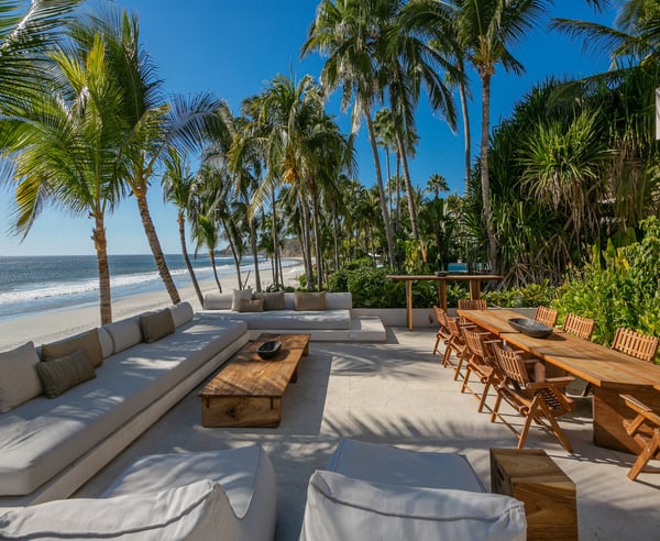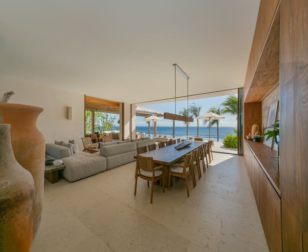Casa Veneros is a luxurious Californian-style villa nestled along the stunning Pacific Ocean coastline in the Veneros area. This magnificent villa boasts 6 spacious bedrooms and 8.5 bathrooms, offering an exquisite retreat with breathtaking sunset views. The villa features an open-air living and dining area on the terrace, complemented by an infinity pool that seamlessly blends with the ocean horizon. Inside, you'll find a cozy TV room and an expansive kitchen equipped with bar seating for more than six people, perfect for casual gatherings. The main dining room comfortably accommodates 12 guests, providing an elegant space for formal dinners. The interior is adorned with regional wood, exuding a sense of warmth and sophistication throughout the villa's generous and tastefully designed spaces. Casa Veneros is well-appointed with a grill, a stone pizza oven, and a paella stove, catering to all your culinary desires. The villa offers daily housekeeping services, as well as the assistance of a butler, and chef to ensure a seamless and luxurious stay. The bedrooms are thoughtfully distributed on the second floor, with the primary suit occupying the third floor, offering unparalleled ocean views. Additionally, there's a family room with three beds, providing ample space for larger groups or families. Experience the epitome of luxury and relaxation at Casa Veneros.
