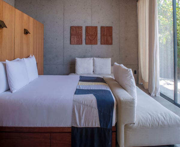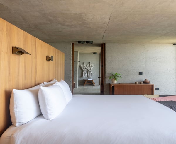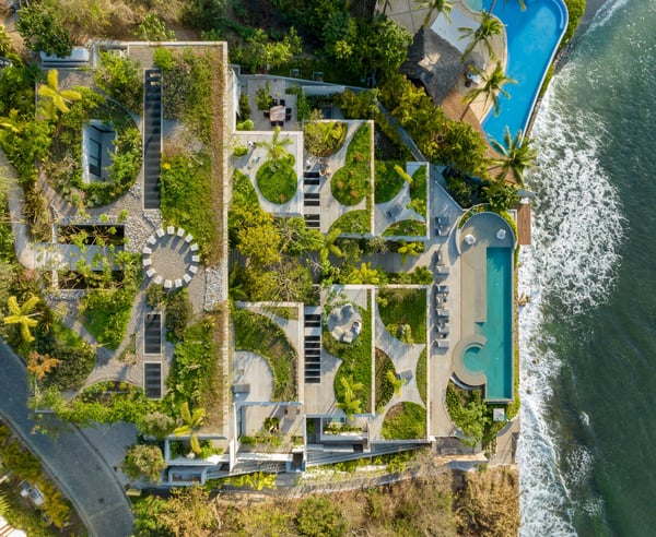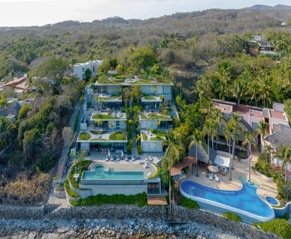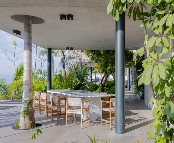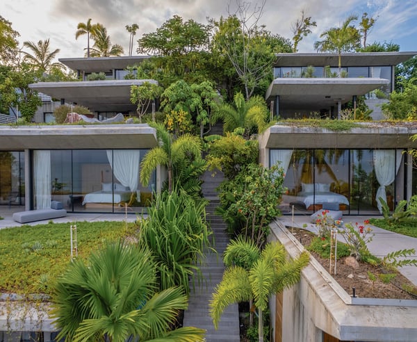 The Premier Golf Membership grants access to Pacifico Golf Course ($), Bahia Golf Course ($), the Tennis Centre ($), the Fitness Center ($), El Surf Club based on min. consumption fee ($), St.Regis Beach Club based on availability and min. consumption fee ($), Pacifico Beach Club, Sufí Ocean Club and Kupuri Beach Club ($). Contact one of our Villa Specialists for more information. Casa Valhalla is a one-of-a-kind, fully staffed, six-bedroom oceanfront retreat designed by renowned Mexican architect Tatiana Bilbao. Perched on the dramatic cliffs of Punta Mita, this five-level architectural masterpiece offers breathtaking 180° views of Banderas Bay, blending effortlessly into the landscape with lush tropical gardens, endemic vegetation, and natural rock formations. Casa Valhalla is the only residence designed by Tatiana Bilbao available for guest stays. The home features six luxurious ensuite bedrooms—some with private plunge pools or soaking tubs—two gourmet kitchens, a wood-fired oven, and expansive indoor-outdoor living and dining areas. Guests enjoy daily housekeeping, breakfast, and lunch prepared by an in-house chef, complimentary access to Veneros Beach Club, and special rates for the W Hotel amenities, all just a short walk away.