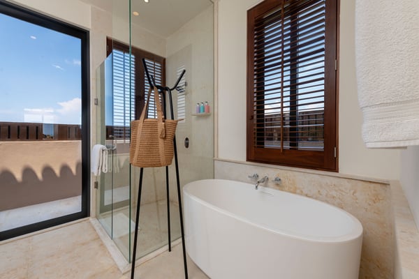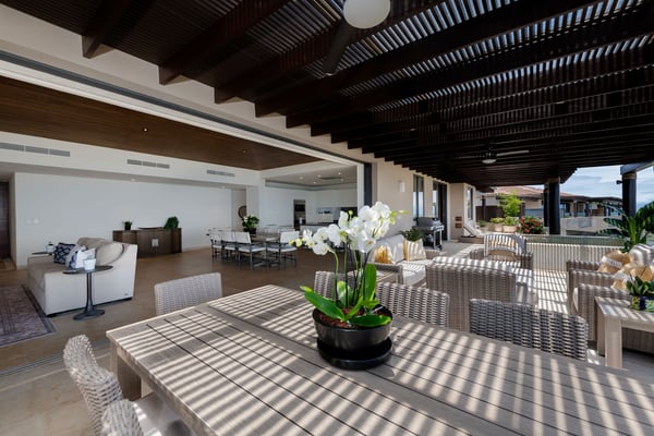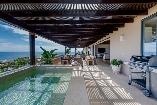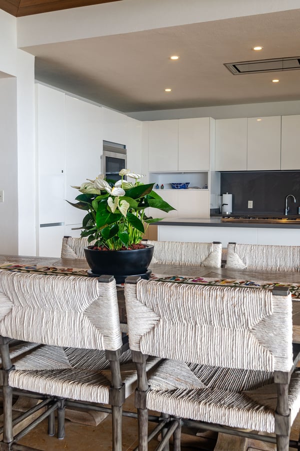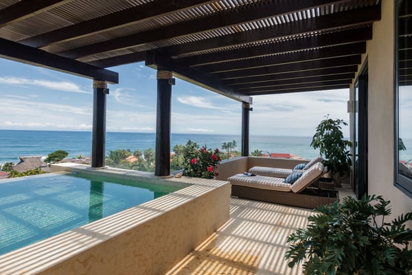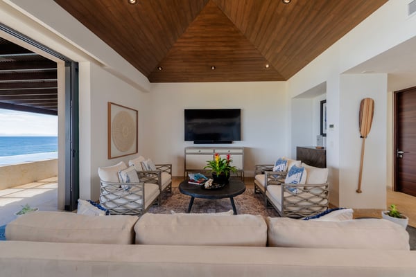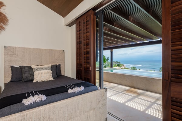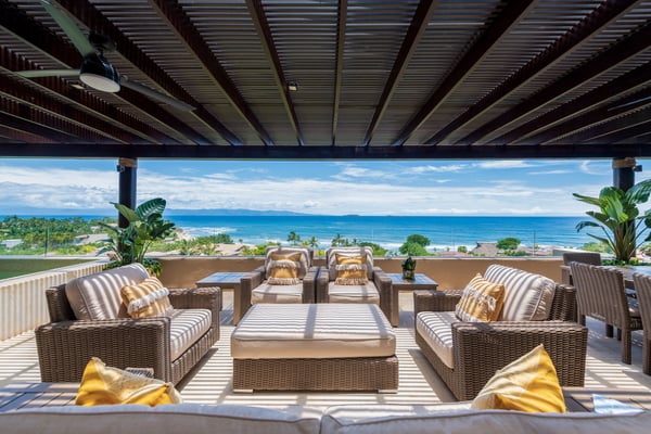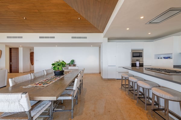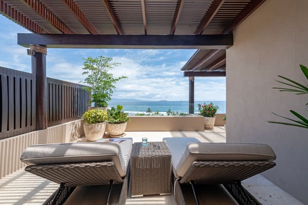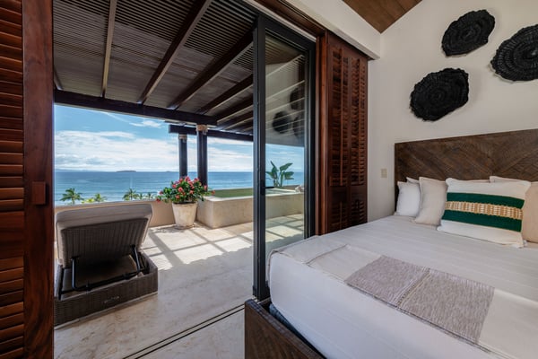 The Premier Golf Membership grants access to Pacifico Golf Course ($), Bahia Golf Course ($), the Tennis Centre ($), the Fitness Center ($), El Surf Club based on min. consumption fee ($), St.Regis Beach Club based on availability and min. consumption fee ($), Pacifico Beach Club, Sufí Ocean Club and Kupuri Beach Club ($). Contact one of our Villa Specialists for more information. PH Vista Ballena — Exclusive Penthouse in Punta Mita Experience the Punta Mita lifestyle in this stunning penthouse, perfectly located on the top floor with breathtaking views of Banderas Bay, the Marietas Islands, the Pacific Ocean, and the 18th hole of the Jack Nicklaus Bahia Course. Surfers will love the direct sightline to the famous Punta Mita surf break. Offering over 6,000 sq. ft. of indoor and outdoor living space, the residence features two king bedrooms and two additional bedrooms with two queen beds each—perfect for families or larger groups. Relax on the expansive terrace, complete with an infinity pool, outdoor dining area, and cozy lounge spaces, all while enjoying incredible sunrises and sunsets from the comfort of your private retreat.