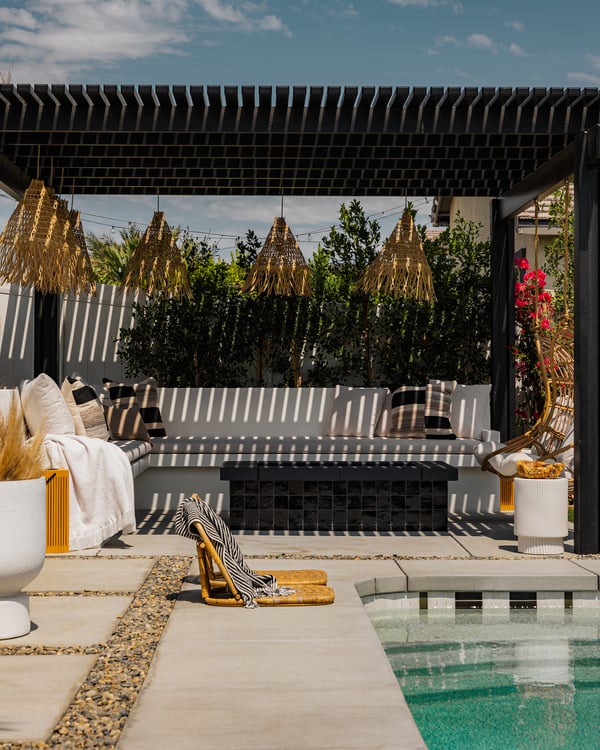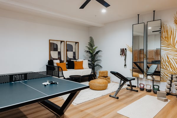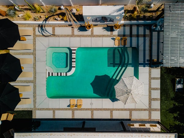 Welcome to Indah, a stunning 6-bedroom home nestled in the heart of Coachella, California. With its name meaning beauty in Indonesian, Indah boasts a unique Bali and Tulum-inspired design, featuring vibrant textiles and a harmonious blend of beauty and nature that will transport you to a serene oasis. Rediscover Relaxation Outdoors Transport yourself to this exotic oasis in Southern California. Dive into the shimmering saltwater pool with a baja shelf or unwind in the adjacent spa, perfect for those sun-soaked afternoons. The outdoor kitchen, equipped with a barbecue, sink, and mini fridge, invites you to host delightful al fresco dinners. Gather around the fire pit under a starlit sky, challenge your friends to a round of putting or cornhole, and enjoy your favorite tunes on the Sonos sound system that enhances every moment. Fun Awaits Inside Unleash your competitive spirit in the garage-turned-game room, featuring a ping-pong table for friendly matches, or maintain your fitness regime in the gym equipped with a bench, weight set, and yoga accessories for serene stretches. Luxurious Accommodations Indulge in the epitome of luxury with six beautifully appointed bedrooms, each offering a tranquil escape. Equipped with smart TVs and the same plush mattresses used in Four Seasons resorts, restful nights are guaranteed in this serene sanctuary. Permit # B-1004841