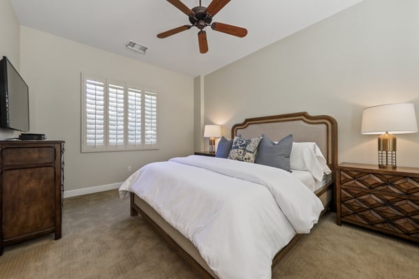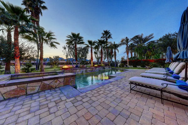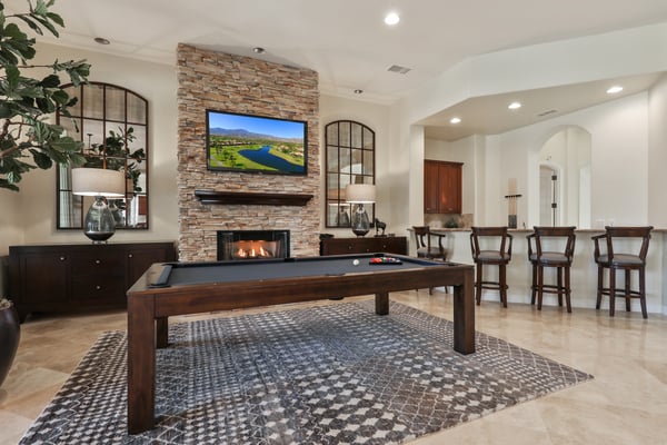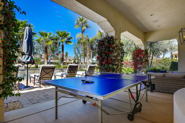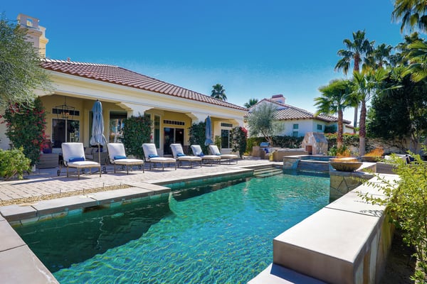 Welcome to Legends, a beautiful resort-style home located within the exclusive PGA West neighborhood on the 13th fairway of the Nicklaus Tournament Course in La Quinta, CA. Come and experience the inspiring panoramic mountain and golf course views in complete seclusion while relaxing poolside at your very own desert oasis. This desert villa boasts nearly 4,400 sqft of open-concept living space with 5 guest suites, 4.5 bathrooms, and comfortably accommodates up to 12 guests. Come with friends and family any time of the year to experience true luxury desert living. Legends is a purposefully designed vacation villa that has been completely remodeled with no expense spared to create the ultimate desert getaway experience. The exquisite woodwork, stone flooring and custom furniture throughout elevate this beautiful home to stand out from the rest. Enjoy a cocktail from the well-appointed wet bar equipped with a wine refrigerator while relaxing in the great room or challenging friends and family to a game of billiards in the game room. The great room is furnished with comfortable seating and not one, but two large flat screen TVs to enjoy. The large, chef’s kitchen features granite countertops, a coffee bar, large refrigerator, double oven, oversized island and spectacular views of the pool and yard with an entrance to the outdoor entertaining area. Gather at the breakfast bar or dining nook for a casual meal or formal dining table for special occasions. Located just off the main living area, your guests can venture outdoors to experience amazing sunsets, mountain and golf course views from the covered patio featuring 5 separate seating areas, large fireplace, ping pong, custom BBQ island and the Salt Water Pebble Tech Pool and Spa. The spectacular grounds and outdoor entertaining areas are the highlight of the Legends Villa. Take a refreshing plunge in your private outdoor saltwater pool and then indulge in a relaxing soak in the private hot tub. The palm trees and mister system will keep you cool on the hot desert days. In the evening, fire up the grill and dine al fresco by the pool with seating for 10. Then relax around the outdoor fireplace and gaze up at the stars while the fire crackles in the background. Permit #: 067651