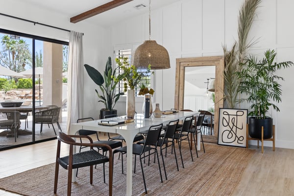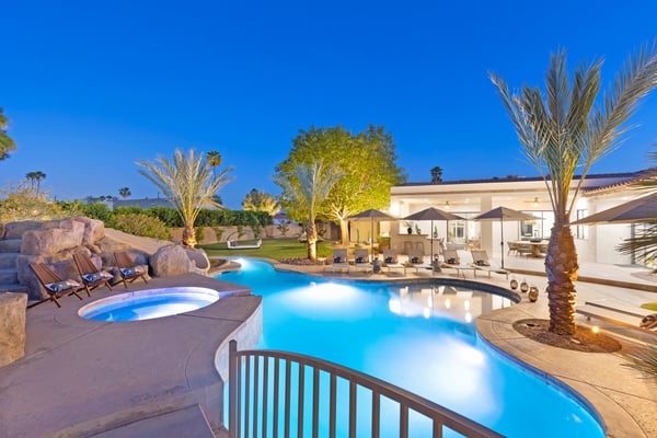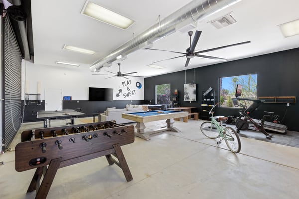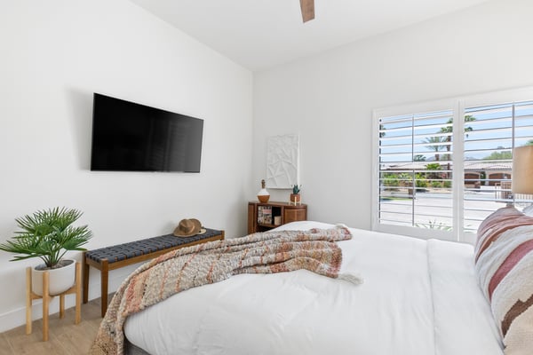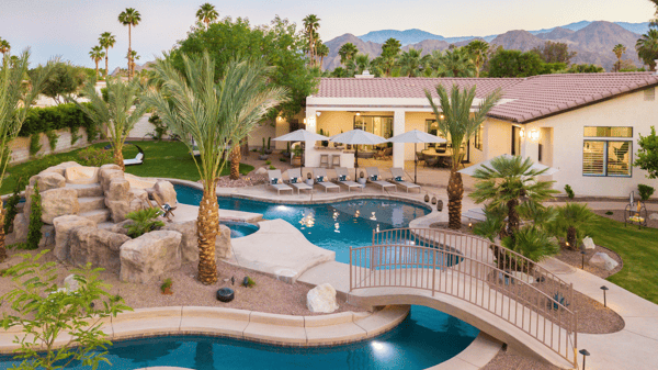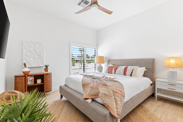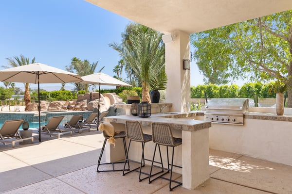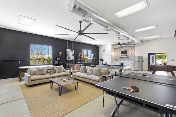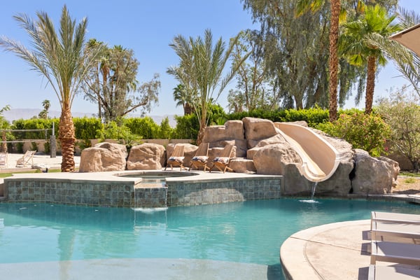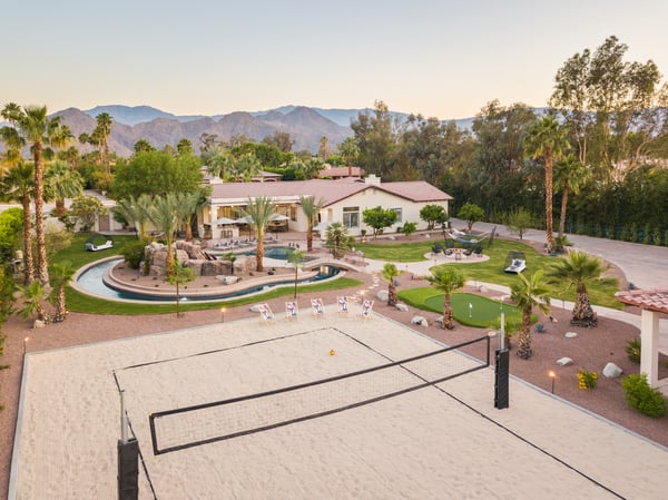 Casa Mara is a true desert oasis that embraces the tranquil elements of nature throughout the design and furnishings, allowing you to arrive and instantly escape from the hustle and bustle of daily life. Sun seekers have a run of this 1-acre, lush outdoor space, consisting of a large swimming pool with lazy river and water slide, hammocks, sun loungers, fire pit, putting green, citrus garden, half basketball court, Pickleball Court and a sand volleyball – all surrounded by views of the mountains and desert sky. Want to take the entertainment inside? Casa Mara has a fully air-conditioned, converted garage space that has become the ultimate game room and gym. Equipped with billiards, foosball, air hockey, ping pong and a large, big screen TV, this space will leave you thinking - what more could you ask for? Oh, a gym? We’ve got you covered with the all-new Peloton treadmill and Peloton spin bike! Other noteworthy features - Sonos sound system integrated indoors and outdoors throughout the property, desert zen garden lounge area, hanging chairs, outdoor shower and an outdoor guest bathroom for easy access from the pool area. There are several dining options with an outdoor kitchen that includes a grill, mini fridge, outdoor TV and plenty of prep space. Inside, the large open-plan kitchen comes with an island and large breakfast bar – your resident chef's happy place. All brand-new surfaces throughout the homes and sleek monochrome/earthy touches give the living area a classy, sophisticated feel, helped by the natural light through large windows – a sophistication that continues into the bedrooms. The luxurious bathrooms are particularly stylish, and the deep freestanding bathtub in the primary suite is the perfect place to end sunny Palm Desert days. You won't need to (or want to) leave this estate property, but if you do, head to the unique landscapes at nearby Joshua Tree National Park for desert hikes and total tranquility or drive down the road to El Paseo, the “Rodeo Drive” of the desert for shopping and dining. Permit #: STR2023-0448
