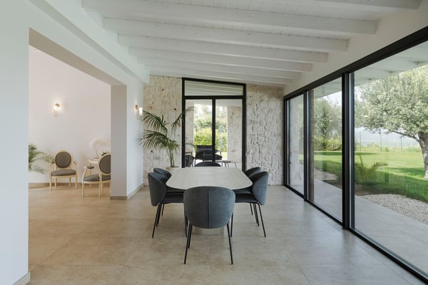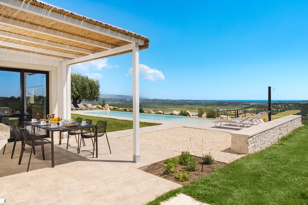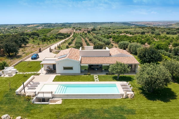 Set in an enchanting rural context, the residence is surrounded by a well-kept garden with lawn, which houses the splendid infinity pool and spacious terraces where the view sweeps over the surrounding countryside out to the sea. The cosy, light-filled interiors on one level feature a large living area with lounge, dining room and kitchen, a half bath and four double bedrooms (with 160x200-cm beds), all having an en-suite bathroom with shower. In addition to being fully air-conditioned, the villa has Wi-Fi internet, Smart TV, washing machine, dishwasher, electric and microwave oven, espresso and American coffee maker, barbecue, outdoor shower and private parking. The strategic location of Netina Domus likewise makes it possible to reach the nearby historic centre of Noto and the most beautiful locations in south-eastern Sicily, such as Syracuse and Ortigia, Modica, Scicli and Ragusa Ibla, Marzamemi, Portopalo di Capo Passero and the Vendicari Nature Reserve in a few minutes by car. CIN: IT089013C2M3PR2XI8