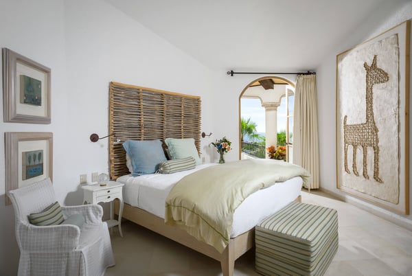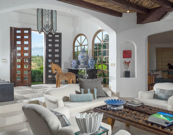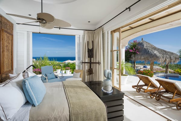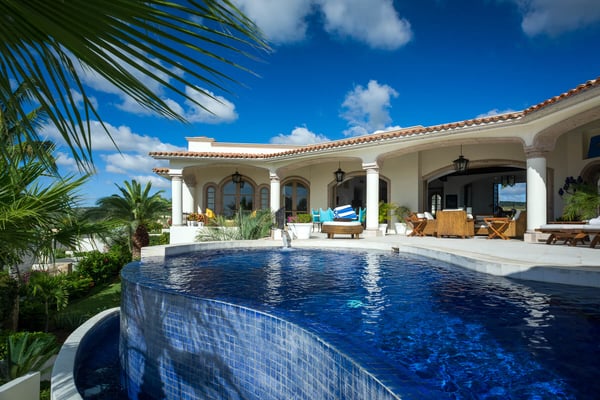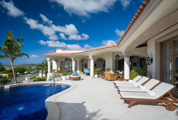 With ocean views from nearly every room of this sprawling home, Villa Buena Vida delights with luxury features and resort-style amenities. Designed to accommodate large and extended families and friends, the home includes an excess of admirable outdoor space, complete with a cascading swimming pool. Complimented by a thatched palapa and surrounded by plenty of entertaining space, this luxury villa also includes an outdoor fireplace, a fire pit, and plenty of room to relax alongside the ocean breeze. With an abundance of outdoor and indoor dining space, the home includes the addition of a breakfast bar within the gourmet kitchen, which has been outfitted with dual ovens and matching stainless steel appliances. The comfortable main living area of the home is open and decorated with subtle sophistication, seamlessly blending the indoor and outdoor spaces as one with walls of windows and glass doors. This spacious home includes enough room to sleep 14, with six bedrooms, all of which include an ensuite bath. In addition, most of the rooms include King-sized beds, complete with a private terrace and ocean view, while one bedroom is perfect for the younger crowd, as it is outfitted with three matching bunk-beds. Situated within one of the most desirable golf communities in the region, Villa Buena Vida offers you a vacation home surrounded by premiere outdoor recreation. Designed by Jack Nicklaus, the nearby Desert Course provides a world-class golf course setting. At Villa Buena Vida you'll find the perfect oceanside setting and fantastic water views, all while being one kilometer away from a protected swimming beach.
