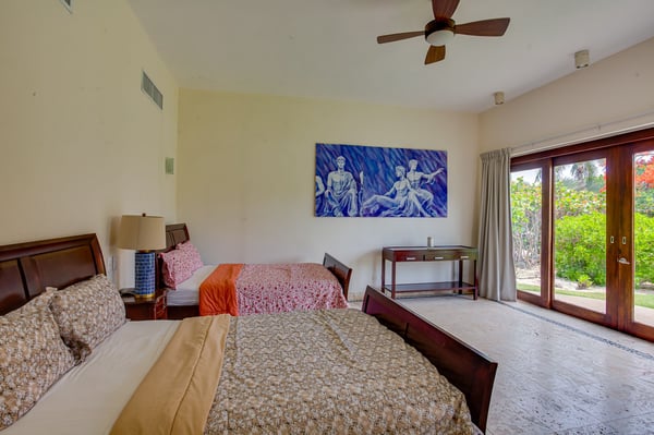 Guests staying within Cap Cana will have access to all resort amenities and facilities. Resort amenities and facilities include a golf course ($), spa ($), restaurants ($), bars ($), fitness centre ($) and tennis centre ($). With its location within the upscale and private community of Cap Cana, this posh 5-bedroom property is a wonderful opportunity for a large group of friends looking for a blast and celebrate bachelor parties. Offering more than just ample accommodation, the property provides visitors with an amazing list of nearby activities but is a wonderful and world-class destination in its own right. Taking design cues from the tropics, this two-story villa incorporates a blend of indoor and outdoor living along with the use of native materials and decor. Looking out over a world-class golf course and sitting along the sands, it is a dreamy place for a group of 12 or less to relax, refresh or even to celebrate a special event. The villa boasts a large and elegant stretch of private pool that ends in a large and comfortable Jacuzzi. Surrounded by gardens and palms, it retains privacy even as it maximizes the experience of the lovely setting. The pool is surrounded by a stone terrace and several outdoor living spaces, these lead back to the covered terrace area and into the lower level living spaces. A large and elegant living room looks out to the pool and features an entertainment system. Nearby is the formal dining room and the complete, gourmet kitchen - both of which also face the remarkable views and scenery. The villa has five bedrooms, each with a large and private bathroom. Two of the bedrooms feature king sized beds and the remaining three offer up two queen beds in each space. There is cable TV throughout as well as WiFi. The beach club is just a five-minute ride, but you may find it hard to leave your private paradise.