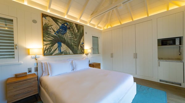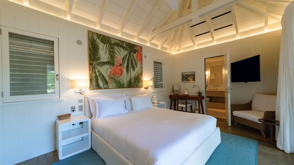 Bedroom 3: Located on the main level in a separate cottage. King size bed, air conditioning, ceilingBedroom 3: Located on the main level in a separate cottage. King size bed, air conditioning, ceiling