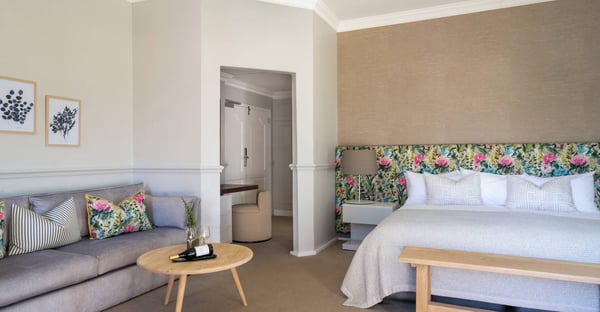 Please note that the photos may not represent the exact hotel room you will be assigned, as this is just one of six possible rooms. Discover Mont Rochelle, a stunning hotel and vineyard in the renowned Franschhoek, South Africa’s ‘French Corner’. Escape to this picturesque corner at the foot of the Klein Dassenberg Mountain Range for relaxation and a superb culinary experience paired with award-winning wines. The six spacious and sophisticated Merlot Rooms are larger than the Shiraz Rooms and feature king-size beds and sweeping valley views. These rooms are nestled within the Garden and Manor Wing. Each tastefully decorated space features a king-size bed, desk space, and French doors opening out onto sweeping views of the valley. With their soft, beautiful linen, rich upholstery, and delicate floral décor, these light and energizing rooms set the tone for a truly unforgettable stay.
