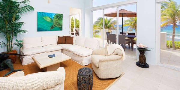 Welcome to Villa Caymanas! This beautiful oceanfront villa is located in Old Man Bay along the north coast. Boasting four-bedroom suites, an oceanfront freshwater pool, and an expansive balcony, Villa Caymanas is the perfect vacation retreat. Whether you prefer to explore the snorkeling reefs nearby or simply relax by the pool, it’s all just steps off the back door. The beach here is strictly pebbly, rarely sandy, but the owner has a very sandy backyard around the pool deck. The villa is directly in front of Babylon, one of the top 5 dive sites on the entire island. The snorkeling in this area is excellent, however, fins or pool shoes are necessary to protect your feet. Villa Caymanas' modern, streamlined architecture features many oversized oceanfront windows that flood the interiors with natural sunlight year-round. The kitchen, living, and dining areas open onto a second-floor balcony spanning the full width of the property providing stunning ocean views. Guests will have the option of dining indoors or al-fresco off the balcony. A modern kitchen comes equipped with standard appliances, dishware, cookware, cutlery, and a coffee maker. An exercise room and home office are also on the lower level. With gorgeous views throughout, comfortable furnishings, and wonderful outdoor space, Villa Caymanas is sure to please! Beach Notes With a central location, the homes in Old Man Bay offer perhaps the best shore diving and snorkeling on the entire island. The beaches are mostly sand, but also can be pebbly with natural rock formations. Either way, with the varied marine life we have in the water, you will want to wear pool shoes or fins for foot protection. The beaches here offer great seashell collecting and turtle sightings in summer! Villa Caymanas has an elevated view of the Caribbean with a pebbly/rocky beach. The resorts in East End, Morritts and The Reef, are open to the public and only about 5 minutes east. Both offer manicured beaches and restaurants, a modern grocery store, liquor store, gift shops, a Subway sandwich shop, and a cafe/pastry shop. These two resorts also offer scuba, snorkel trips, jet skis, windsurfing, kiteboarding, ocean front pools and bar service. General Grand Cayman Beach Notes All beaches in Grand Cayman are technically public since the Crown owns up to the high water mark. The shoreline quality behind your property may vary slightly from the images on our website due to shifting tides and weather patterns. The next-door beach is also always available for your use. Ocean Debris and Sargassum Seaweed Beaches in Grand Cayman may also experience floating ocean debris and sargassum weed seasonally. Sargassum is a generally harmless floating seaweed that has increased in frequency in recent years. Although sargassum is an unsightly nuisance, it is largely seasonal in summer. The owners do make efforts to remove heavy sargassum and will have the beach raked prior to your arrival. We try our best to work around mother nature.