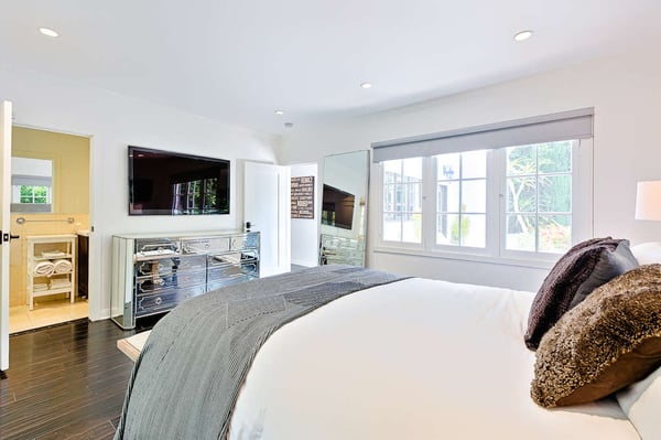 Travellers to West Hollywood admire many things about the city. Its cultural significance and nightlife, exemplified by the Sunset Strip. Its proximity to many popular points of interest in Los Angeles, such as the Hollywood Hills, Hollywood sign, Beverly Hills, the Walk of Fame, and Griffith Park. Also of note, but less celebrated, is the premium selection of vacation rentals in the area. The Olive Branch by Elite Luxury Homes is one among many luxury West Hollywood vacation homes, though it certainly lends itself to those who enjoy the vivacity of central Los Angeles while appreciating their privacy. The Olive Branch is securely and discreetly located at the feet of the in-vogue Bird Streets. Tucked behind stately gates and large hedges, the lush gardens and large avocado trees of this three-bedroom vacation rental in West Hollywood will make you forget your surroundings in no time at all. The luxurious landscaping and architecture will put you in mind of a Mediterranean villa. The garden also features a large deck, outdoor kitchen, barbeque, wet bar, fire pit, and heat lamps. Unlike many Los Angeles vacation rentals, all three spacious bedrooms in this property enjoy ensuite bathrooms with steam showers. The interior, in general, speaks to the designer's regard for both contemporary design and their respect for classic decor. With a sleeping room for eight, this is the perfect Los Angeles vacation home to share with family and friends. Finding a vacation rental in Los Angeles with a better location for sampling the many delights and attractions of the city would be hard to do. Even the coastal attractions of Santa Monica Pier and Venice Beach are within half an hour's reach. From the restaurants, boutique shopping, and nightlife a stone's throw from your door, to the excitement of Universal Studios Hollywood and Six Flags Magic Mountain, there's something for everyone within easy reach.