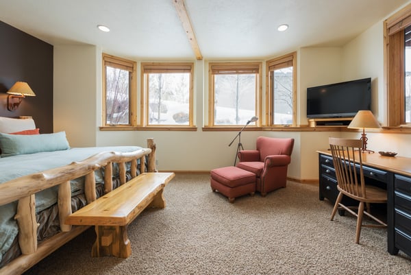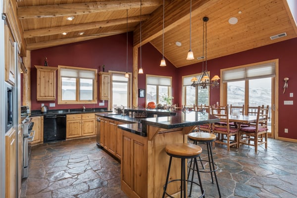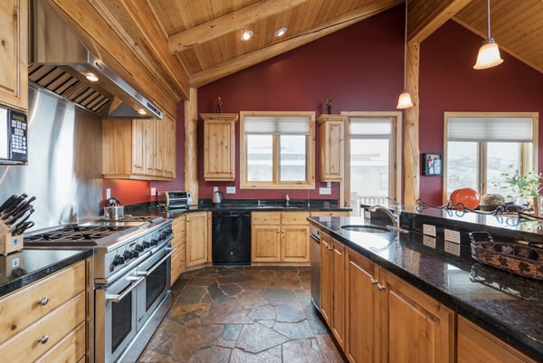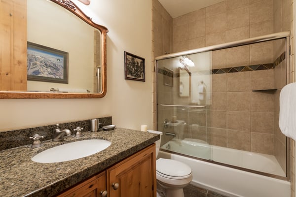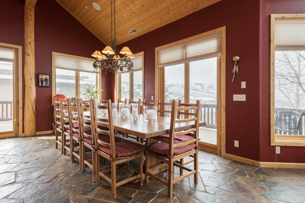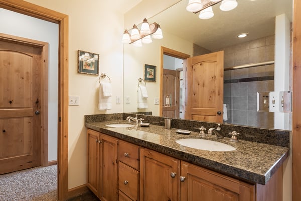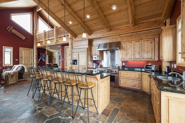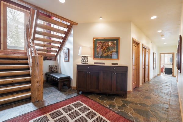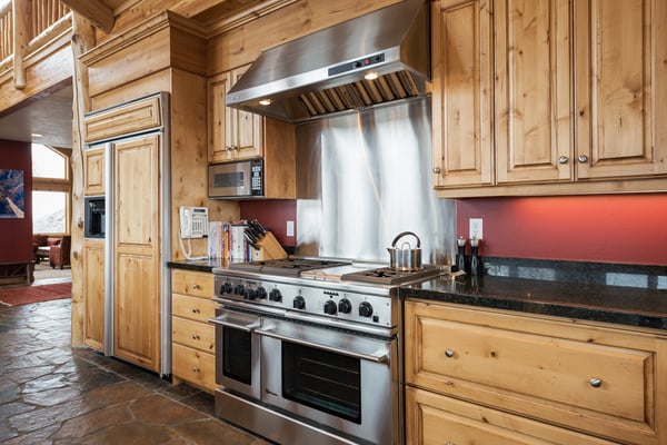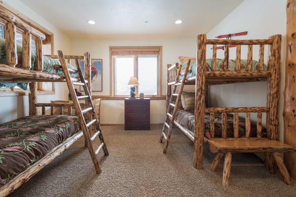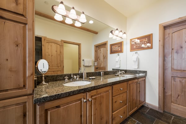 Rental Escapes has partnered with Ski Butlers to offer you the best rental experience in the industry. No more lines. Ski Butlers is a full-service ski and snowboard company that delivers the equipment to you. Contact a villa specialist for more information. Experience an epic getaway at Solamere Home in Park City! This inviting three-level, five-bedroom, six-bathroom retreat sleeps up to 14 guests. Located in a residential area of Deer Valley, guests will love the panoramic views of the Wasatch Mountains, multiple fireplaces, private hot tub, and the convenience of Main Street’s shopping and dining—only 10 minutes away! Entering on the main level, guests are greeted with heated stone floors and log cabin details that evoke the atmosphere of a luxury ski lodge. A Western-style leather sofa, loveseat, and armchair surround an impressive stone fireplace in the great room. Curl up with a book on the comfy window seat or watch the snowfall out the soaring picture window. Kids can enjoy their own space in the second living area with seating, a fireplace, and a TV. The gourmet kitchen boasts granite countertops, high-end appliances, and eight seats at the breakfast bar for taste testers to visit with the chef of the group! A formal dining table seats 10 for meals. Fire up the grill on the deck overlooking the surrounding mountains, or relax on the patio seating. When bedtime arrives, retire to the primary bedroom with a king bed, a private bathroom, a sitting area with a gas fireplace, TV, and deck access. The first guest bedroom on this level has a twin bed, and the second has a queen bed. Head downstairs to rejuvenate sore muscles after a day on the slopes, trails, or golf course in the private hot tub on the ground-floor patio. In the den, discover two sleeper sofas—full and single—along with a foosball table, fireplace, and TV. The kid-friendly bunk room has two twin-over-twin beds, while the guest bedroom features a king bed, TV, and private bathroom. The third-level loft has soft seating and a TV. Attached is a guest bedroom with a queen bed and a private bathroom. Year-round Park City fun and luxury await at Solamere Home. Parking for one vehicle in the garage and a heated driveway makes it easy to explore, no matter the season, and visit Snow Park Lodge at Deer Valley (6 min.) or Park City Mountain base area (11 min.) for ski access.