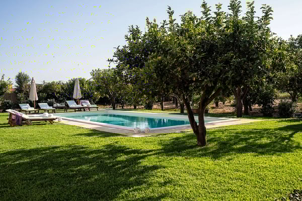 Don Salvatore is a stunning villa with a private swimming pool, located in southeastern Sicily between the historic city of Syracuse and the crystal-clear waters of the Plemmirio Reserve. Recently renovated, this charming property is nestled within a lush garden of citrus trees, offering a serene atmosphere and a spacious terrace perfect for al fresco dining. Set entirely on one level, the villa’s elegant interiors feature classic furnishings and thoughtful design. It boasts a large living and dining area, a fully equipped kitchen, three double bedrooms – one with an en-suite bathroom – two single bedrooms, and two additional bathrooms. Don Salvatore is outfitted with modern comforts, including air conditioning, wireless internet access, satellite TV, a dishwasher, washing machine, and heating. Ideally situated, the villa provides easy access to Syracuse’s historic center, the Plemmirio Marine Protected Area, and the sandy beaches of Arenella and Fontane Bianche. Nature lovers can also explore the nearby reserves of the River Ciane and Cavagrande del Cassibile, making Don Salvatore a perfect base for discovering the beauty of southeastern Sicily. CIN: IT089017C2YK749GGT