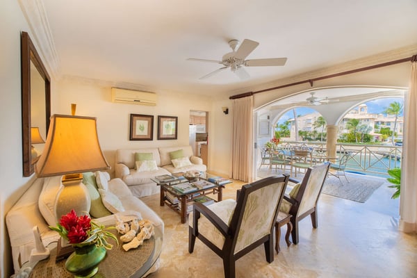Port St Charles 266 is a charming luxury two bedroom lagoon apartment perfect for your next holiday in Barbados. This wonderful unit has an open bright feel and offers panoramic ocean and marina views, which make it your own personal oasis while on vacation. On entering Port St Charles 266 your eyes are taken in by the local art and exquisite furnishings and as you enter the foyer you get the first look at the breathtaking views from the living room to the covered patio. The main living area is airconditioned for added comfort and flows onto the large patio, perfect for dining, relaxing or enjoying a rum punch with loved ones as the sun sets over the West Coast of Barbados. Both bedrooms feature en-suite bathrooms, air conditioning and small private balconies. Open the balcony doors to allow the cool Caribbean breeze to enter. Despite the comfort of the bedrooms and the apartment as a whole, Port St. Charles is packed with amenities to make your vacation unforgettable. Enjoy meals at Pier One the onsite restaurant, bar and yacht club, take a swim in one of two communal pools as you watch boats enter and exit the marina, or try your hand at a game of tennis. Port St Charles has something for everyone, you can also enjoy direct beach access with complimentary beach loungers and umbrellas, a water taxi for easy transport around Port St. Charles, a fitness centre, gated access with around-the-clock security, and two dedicated parking spaces for added convenience.