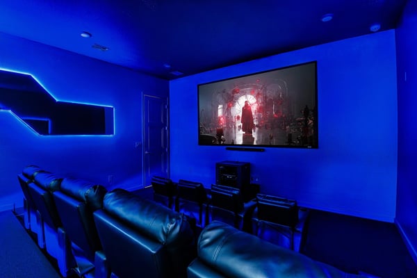 Guests staying at this accommodation will have access to the amenities at Solterra Resort. Resort amenities include tennis courts ($), a lazy river ($), fitness centre ($), covered playground, scenic grounds, as well as its 15,000-square-foot Event & Conference Center, featuring fitness classes, entertainment, food experiences, and ticketed events. Score a touchdown when you book this fantasy mansion built to thrill the sports fans in your group. The luxurious 12-bedroom villa in Villatel Village will have your guests cheering wildly over its amenities—including a colossal pool and spa, private theater, arcade room, indoor and outdoor kitchens, even a karaoke room! But the real trophy is the trio of over-the-top themed bedrooms, including one for mega-fans of American football. Enter this nearly stadium-sized (7,200 square feet) mansion through the elegant grand foyer. In the gorgeous great room, styled with warm and inviting Organic Modern décor, watch the big game on the oversized TV—or relax and connect with your gang on the classy and chic sofas and chairs. Whip up some half-time snacks in the open and airy chef’s kitchen, which makes an impression with its sleek black-and-white cabinetry, white marble countertops, and top-end fixtures and appliances. Huddle with your loved ones at the breakfast bar with stools, or gather around the banquet-like dining table that seats 16. One of this home’s winning features, the custom karaoke room is dazzlingly designed to inspire you and your guests to belt out your favourite tunes together. With its cool stage setup, lounge-style furnishings, jukebox, and shimmering disco ball, this garage-turned-performance space will have you feeling (and singing) like superstars. The adrenaline junkies in your group will gravitate to this fun hideout filled with classic arcade games. It’s all about joy (and joysticks) in this space for fans of exhilarating air hockey, nostalgic Pac-Man, and more. The warm Florida sunshine is calling you outdoors to dive into your very own massive swimming pool, surrounded by a ‘Florida glass’ privacy screen. Swim laps, relax in the bubbly spillover spa, or challenge your pals to pool basketball, foosball, or ping-pong. Make it an all-day affair complete with meals and snacks from the luxe outdoor kitchen, which sports a built-in BBQ, plus a lovely table with seating under the shaded lanai. Head back inside to check out this cool entertainment headquarters at the top of the stairs. Cue up a game of billiards at the pool table, or challenge your gang to darts, ring toss, and wall Scrabble in a fun round-robin tournament. Take a break from the competition and unwind together in your fabulous private cinema. Sink into the comfy reclining seats with cup holders for drinks and snacks, and enjoy a favourite flick on the 86-inch screen with surround sound. It's easy to keep your workouts going all vacation long when you have a private gym to motivate you. Work up a sweat on the treadmill or bike, or lift weights. For extra inspiration, boot up the smart TV for a virtual training session. The kids (and kids at heart) in your group are bound to flip over the three themed bedrooms, each one a unique and creative masterpiece. Start on the first floor with the Football Fantasy room—this home’s extra-special and extra-spacious “12th bedroom,” built to sleep up to six sports-loving guests. Designed like an arena, this room is filled with the energy of a live game–with wall art featuring a grassy American football field, life-sized athletes, an oversized NFL trophy, and silhouettes of cheering fans. Bunk beds hide inside a giant football and helmet, and bright-blue slides whisk you back to ground level. Upstairs in the Mini Playhouse bedroom, the kids will love visiting their favourite animated girl mouse in her pretty pink abode. This vivid-hued room is full of make-believe fun with a bright blue sky and puffy clouds overhead, hidden bunk beds, and a polka-dot twisty slide. Next door in the Galaxy Room, huts and caves conjure up a frontier desert world on a far-off planet. Reminiscent of a favourite space-themed movie, this adventuresome oasis will inspire your little space warriors to keep watch for intergalactic outlaws—and then happily drift off to sleep in cozy bunk beds connected with ladders and slides. Designed to pamper the grownups in your group, nine more bedrooms on the first and second floors are luxuriously outfitted in Organic Modern style (think: top-quality finishes, a mix of clean lines and natural materials, and a chic yet soothing neutral palette). Downstairs, find a primary bedroom with a king-size bed, a regular king bedroom, and a primary queen bedroom with its own double-door walkout to the pool area. Upstairs, choose from five beautifully appointed king bedrooms and one bedroom with two full beds. Each bedroom (including the themed kids’ rooms) features its own en suite bathroom with top-class amenities.