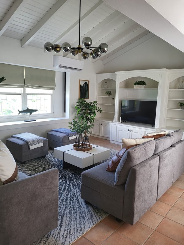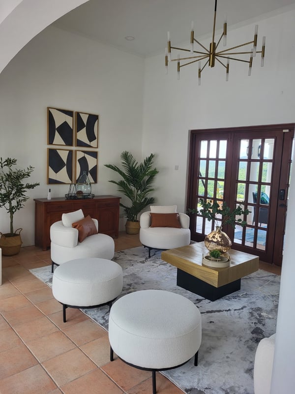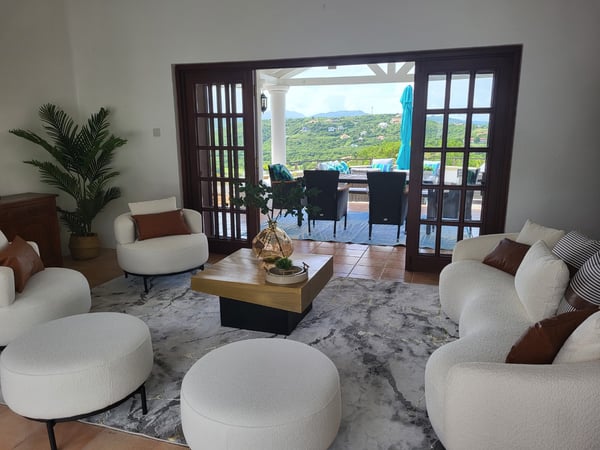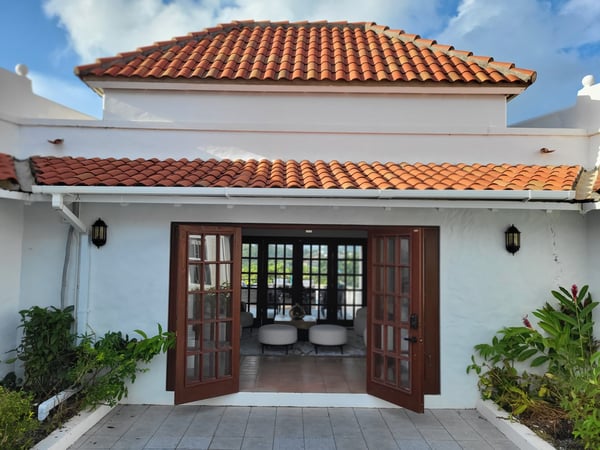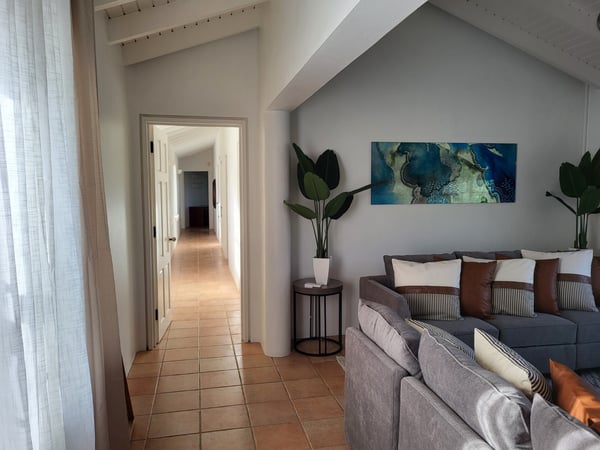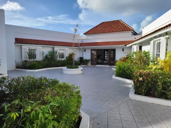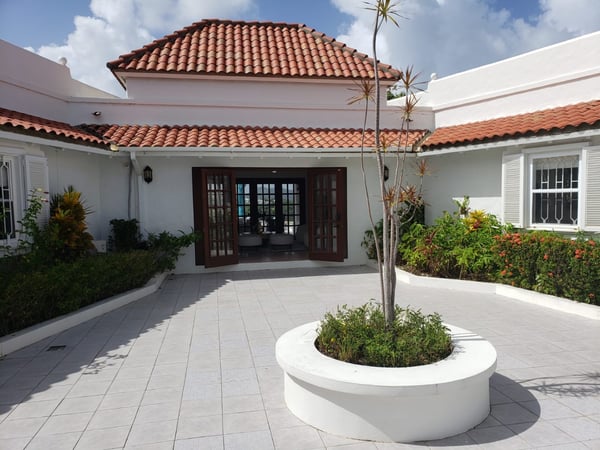 Enter this beautiful Spanish-style villa through a magnificent floral courtyard perfect for entertaining. Through the double door entry is a centrally located living room that spills out to the patio and pool area overlooking an 18-hole golf course, the Caribbean Sea to the West and the Atlantic Ocean to the East. From the main entry you can head to the spacious kitchen that includes a breakfast bar. Just down the hall, a spacious but cozy family room. The bedrooms down a separate hallway all have their own bathrooms as welll as their own air conditioning units.