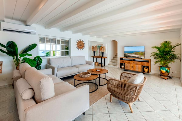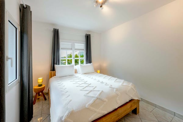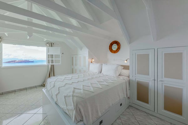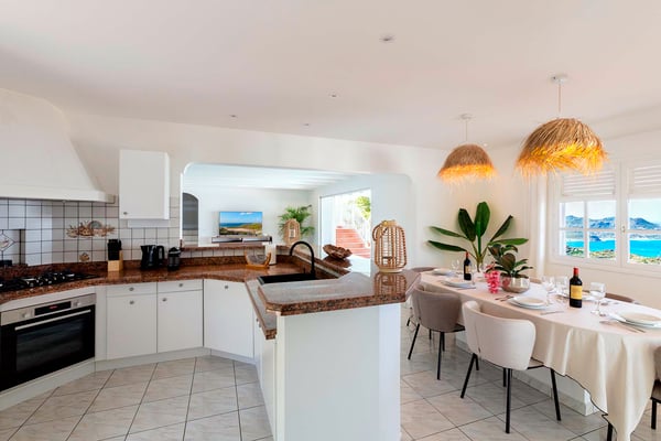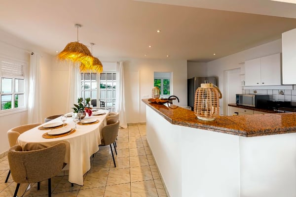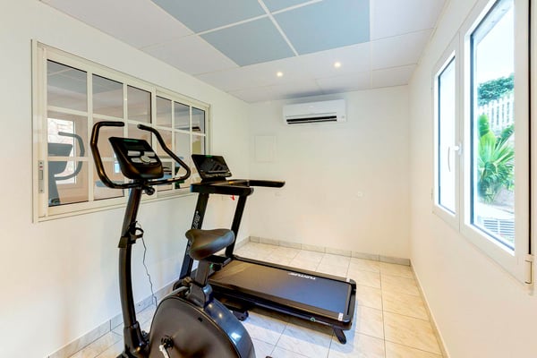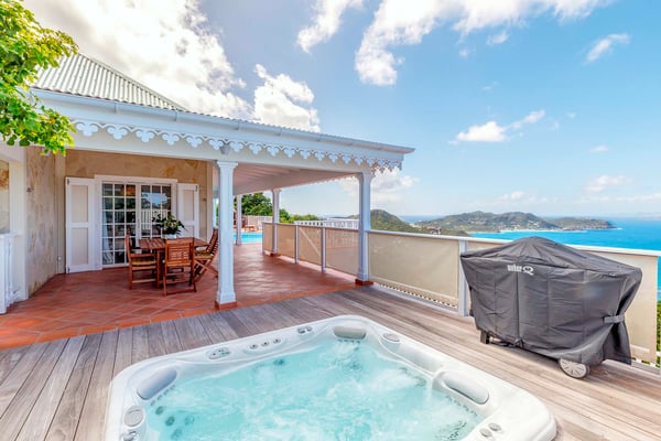 Villa Tam is a magnificent property located on the heights of Vitet, offering a breathtaking panoramic ocean view. This old family home with its authentic Caribbean style and warm ambience is ideal for an unforgettable vacation. The villa features a living room and a fully equipped kitchen, perfect for preparing delicious meals with family and friends. All living areas are air-conditioned. Villa Tam’s main attraction is its terrace with a heated swimming pool and Jacuzzi. You can relax in the water while admiring the spectacular ocean view, creating unforgettable memories. The villa has three comfortable bedrooms. The primary bedroom, on the second floor, has its own private bathroom with a bathtub. The other two bedrooms, on the second floor, share a bathroom, ideal for children or friends travelling together. For those who want to keep active during their vacation, Villa Tam offers a small fitness room equipped with a treadmill and bike, allowing you to maintain your workout routine even away from home. The neighbouring villa Clémentine can also be rented. It has 3 bedrooms and is accessible via a path through the garden. Villa Tam is perfect for couples and families looking for a vacation in idyllic, picturesque surroundings.