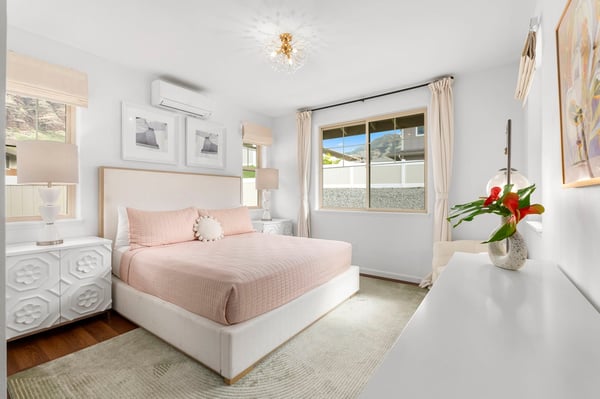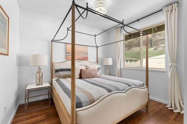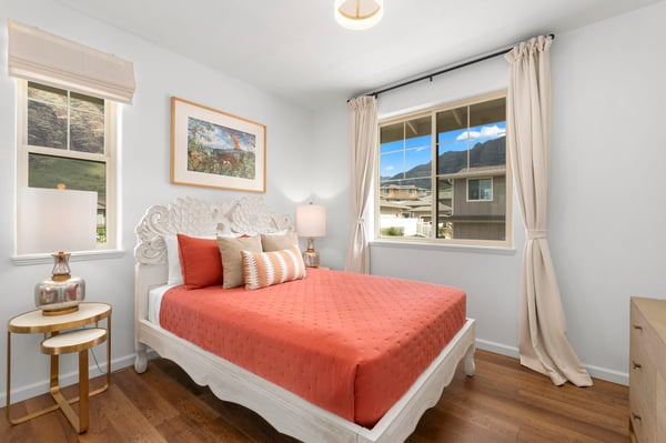 Serenity Ridge is your Oahu haven, perched in a prestigious gated enclave within the scenic Makaha Valley. This sunny home boasts four bedrooms, a beautiful outdoor space with mountain and ocean views, and a seven-minute drive to Makaha Beach. Nestled in a cul-de-sac, you'll enjoy a sense of privacy, an oversized outdoor space, and ample parking that not many lots in the area offer. And inside, a crisp, chic design flooded with natural light can be found throughout every room. The living room leads seamlessly to a gourmet kitchen equipped with modern appliances, barstool seating, and everything you need to make at-home meals and snacks a breeze. Gather around the dining table, illuminated by the sun streaming through large sliding doors, to spend time chatting, eating, or playing games. Outside, discover the epitome of outdoor bliss: a backyard lounge where ocean and mountain vistas intertwine, inviting you to unwind in style. With Makaha Beach Park just a short drive away, this modern oasis harmonizes access, natural beauty, and incredible design. Embrace exclusivity, relish in luxury, and make Serenity Ridge your rendezvous with paradise. Your upscale retreat awaits amidst the allure of Oahu's most enchanting landscapes. In the heart of the Pacific Ocean, Oahu should be on everyone's bucket list. With miles of white sand beaches to play on and lush, forested mountains to explore, the island is ideal for both relaxation and adventure. Whether you're traversing the Kualoa Ranch on horseback, coasting along the Kamehameha Highway, or snorkeling with exotic sea life in clear waters, you'll be amazed by all the natural beauty this tropical paradise has to offer. Local Attractions: Diamond Head State Monument, North Shore, Kailua Beach Park, Lanikai Beach, Giovanni's Shrimp, Matsumoto Shave Ice, Coffee Gallery, Honolulu Zoo, Uncle Bo’s, Haleiwa Joes, Kono’s Kailua GE-190-937-6512-01 TA-190-937-6512-01 TMK - 840/291/500/032 Permit No: 2302-CCH-1081