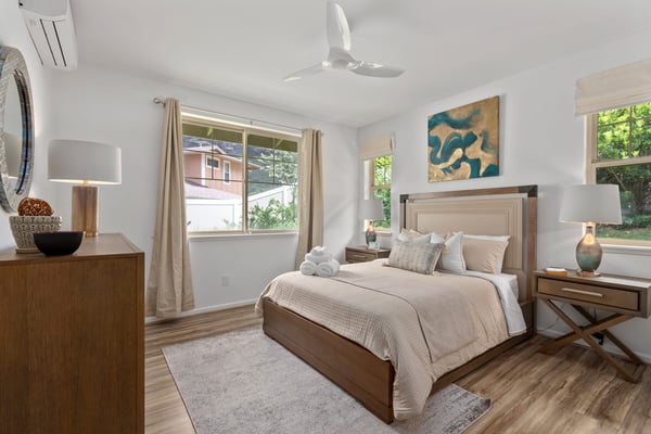 Welcome to Breezeway Haven, your dream getaway in Makaha Valley! Step into this former developer's model home, a haven of comfort and style. Immerse yourself in a spacious single-level residence adorned with upgraded features that redefine tropical living. The best part? You'll be just minutes from Makaha Beach and Makaha Beach Park. Outside, the backyard invites you to unwind amidst the mountain views and glimpses of the ocean in the distance. There’s a sunny outdoor lounge with comfortable seating and a large umbrella for shade. Throughout the home, tasteful artworks adorn the walls, adding a touch of sophistication to this tropical retreat. You'll discover a generous 1,496 sqft of meticulously designed space inside. The open-concept design is filled with natural light and offers a comfortable living room with a TV, a dining table with seating for 6, and additional barstool seating at the counter. You'll also enjoy a gourmet kitchen boasting top-notch appliances from the prestigious Jenn-Air brand, ensuring your culinary adventures are as delightful as the Hawaiian sunset. A wine refrigerator stands ready to chill your favorite vintages, setting the stage for evenings filled with laughter and good company. Your group can spread out between three comfortable bedrooms. The primary bedroom features an ensuite bathroom with a large walk-in shower and dual sinks, while the second bathroom has a shower/tub combo for a soak after the beach. Enjoy the convenience of free parking, with garage space for one car and driveway availability for two more. Whether you're a remote worker needing fast and stable wifi or simply seeking the perfect beach escape, this Makaha Valley gem has it all. Your Oahu adventure begins here – book now and make memories that will last a lifetime at Breezeway Haven! In the heart of the Pacific Ocean, Oahu should be on everyone's bucket list. With miles of white sand beaches to play on and lush, forested mountains to explore, the island is ideal for both relaxation and adventure. Whether you're traversing the Kualoa Ranch on horseback, coasting along the Kamehameha Highway, or snorkeling with exotic sea life in clear waters, you'll be amazed by all the natural beauty this tropical paradise has to offer. Aloha and e Komo Mai! Local Attractions: Diamond Head State Monument, North Shore, Kailua Beach Park, Lanikai Beach, Giovanni's Shrimp, Matsumoto Shave Ice, Coffee Gallery, Honolulu Zoo, Uncle Bo’s, Haleiwa Joes, Kono’s Kailua TA-077-326-8992-01 GE-077-326-8992-01 TMK: 840291500046 Permit: 2305-CCH-1436