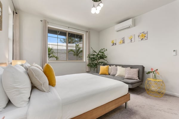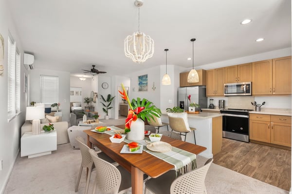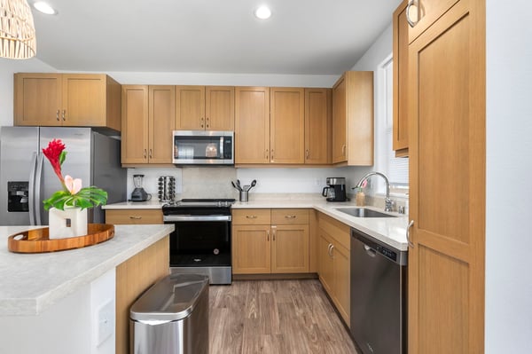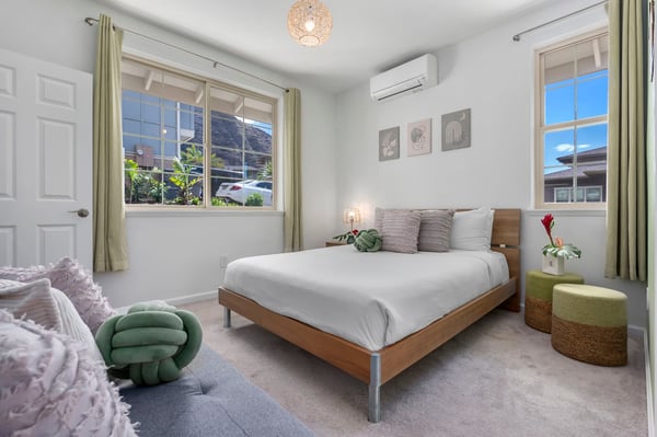 Kick back in the heart of Makaha Valley at Tranquil Tides, a three-bedroom retreat that puts you six minutes from the beaches of Oahu. With a stunning view of tropical mountains from your backyard patio, this modern Hawaiian escape blends style, space, and a beautiful location to give you an island experience like never before. As you enter, discover a bright and airy common area with two couches and a TV — a prime spot for movie nights! There’s even a desk in the living room perfect for remote workers or students, as well as a selection of games ready for group game nights. (Please note that the exact selection of games may vary.) Tranquil Tides' open layout between the living room, dining area, and kitchen makes it easy for your group to stay connected. The dining table sits near the glass doors leading to the patio. It leads into the fully equipped kitchen, complete with a full suite of appliances and additional barstool seating, to make at-home meals and snacks a breeze. Outside, enjoy a morning coffee or afternoon snack on your sunny patio, where you can take in stunning views of the surrounding tropical mountains ringing the valley. You’ll even find beach gear at the ready, stored conveniently in the garage, along with a washer and dryer. Three bedrooms give you plenty of space to spread out, while a quick drive will bring you to the beaches of Makaha. The rest of the island is waiting to be explored. Experience Oahu at Tranquil Tides, your first choice for a one-of-a-kind Hawaiian adventure. In the heart of the Pacific Ocean, Oahu should be on everyone's bucket list. With miles of white sand beaches to play on and lush, forested mountains to explore, the island is ideal for both relaxation and adventure. Whether you're traversing the Kualoa Ranch on horseback, coasting along the Kamehameha Highway, or snorkeling with exotic sea life in clear waters, you'll be amazed by all the natural beauty this tropical paradise has to offer. Local Attractions: Diamond Head State Monument, North Shore, Kailua Beach Park, Lanikai Beach, Giovanni's Shrimp, Matsumoto Shave Ice, Coffee Gallery, Honolulu Zoo, Uncle Bo’s, Haleiwa Joes, Kono’s Kailua GE-202-409-7280-01 TA-202-409-7280-01 TMK: 840291500053 Permit: 2301-CCH-0912