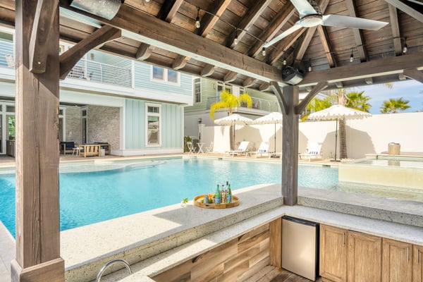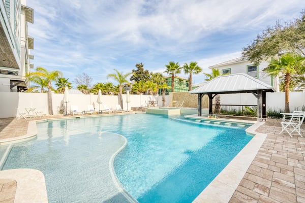 Please note that active commercial and residential construction is currently underway in the city of Destin. Welcome to Regal Reef! This coastal estate has got it all, including eight bedrooms to accommodate your whole crew. Resort-style amenities include a Baja shelf pool, hot tub, outdoor kitchen and TV, swim-up bar, rooftop patio, and game room with a bar of its own. You’ll have access to the nearby beach, which means you can go from poolfront to beachfront in just a few minutes. Whether you're preparing a fun, group dinner in the fully-equipped kitchen, soaking up the views from your rooftop patio, or dipping your toes in the sand, it doesn't get much better than this! Located in Northwest Florida, Destin is dubbed the “world’s luckiest fishing village”. This Emerald Coast city is known for its sparkling white beaches, numerous golf courses, and world-famous fishing. Nearby zipline courses, dolphin cruises, and amusement parks make it a perfect destination for families. Adults and large groups also come here for beach parties during the day and live music at night.