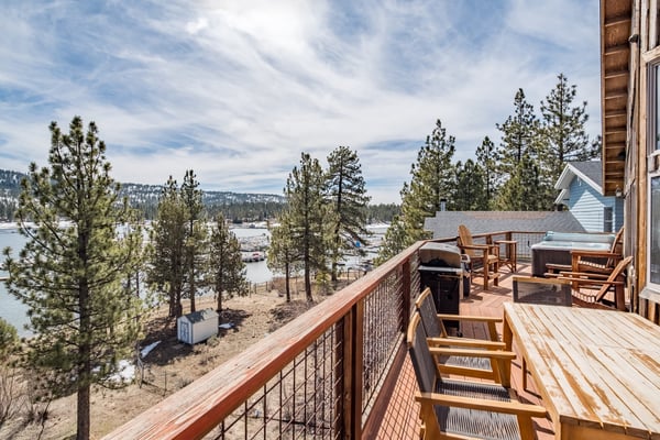 Welcome to Sapphire Crest! This home located on Metcalf Bay is a sensational Big Bear estate that offers spacious, highly upgraded accommodations that will help create a memorable lakefront experience. A luxury custom cabin with direct access to Big Bear Lake and views that fuel relaxation and catalyze the creation of memories. A quick walk to Holloway's Marina and a few minutes drive to the ski slopes, shopping, or entertainment. A fabulously furnished estate, with an open floor plan, the upper entry-level offers a dining area, cozy living room, and a pool table with incredible lake and mountain views. Out the sliding glass doors is a large deck with spectacular views of the lake and a brand new Hot Tub! The spacious gourmet kitchen is fully equipped with all of the essentials for cooking, including cookware, high-end appliances, and breakfast bar seating. The outside deck on the first floor provides a 180-degree view of the lake with a dining table, BBQ, and a new hot tub to relax and take in the views. Out the backdoor, you will find 100 feet of shoreline on the lake. Only about 100 miles northeast of Los Angeles, Big Bear Lake is a beautiful and convenient break from the hustle and bustle of the city. This nature lover’s paradise provides endless year-round activities. In the winter, Big Bear Lake offers skiing, snowboarding, snowshoeing, and tubing. In the summer, visitors love to play water sports, horseback rides, golf, hike, and mountain bike. Head to Big Bear when you need a healthy dose of fresh air, exercise, and rejuvenation. Nearby Attractions: Bear Mountain Ski Resort and Golf Course, Snow Summit Ski Resort, Grizzly Manor Cafe, Dank Donuts, Big Bear Lake Brewing Company, Tropicali, Big Bear Alpine Zoo, Castle Rock, Boulder Bay Park, Big Bear Marina, Big Bear Discovery Center, Alpine Pedal Path. Parking Details: 4 cars can park onsite.