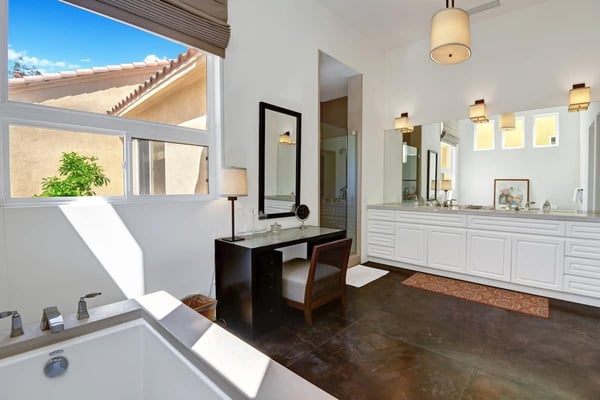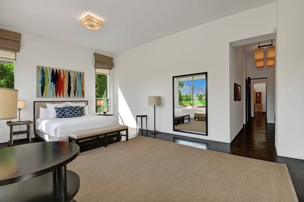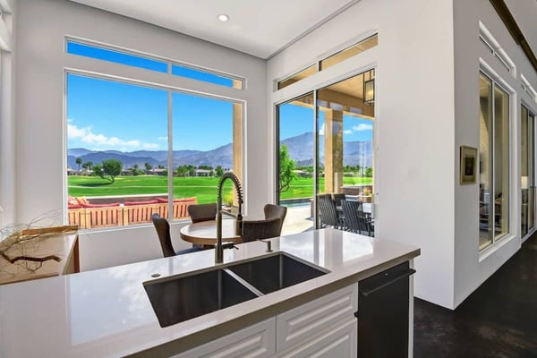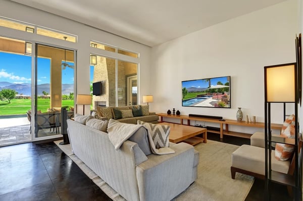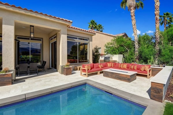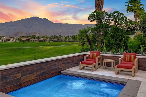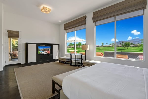 You’re having a dream. In it, you’re sitting on a comfortable chair outdoors next to a pool. The sun is setting and, as the air turns cool, you’re thankful for the outdoor fireplace that’s keeping your toes warm. You’re on a clean, manicured golf course ringed by swaying palm trees. In the distance rises a mountain range, turning dark blue in the fading light…Pinch yourself. When you stay at The Velvet Estate, dreams are a reality. This stunning modern masterpiece is situated on the 4th Fairway with southern double fairway views over the Weiskopf Golf Course and the Santa Rosa Mountains. And it has more to offer than just its incredible location. You'll fall in love with the poolside patio, with its two fireplaces, ample seating and dining space, and expertly groomed landscaping. You’re able to see it as well as the surrounding area through your home’s floor-to-ceiling glass windows. Twelve guests can comfortably share this space. Draw straws for those who will be lucky enough to stay in the private casita, with its own living area and luxe bathroom amenities. There are no losers in terms of sleeping arrangements, though, as each bedroom is as stunning, clean, and comfortable as the last. Drop off your bags and congregate in the kitchen and living area to watch movies on the large screen TV or whip up your best interpretation of SoCal cuisine in a kitchen that would make Martha proud. The Velvet Estate does it all and does it with style. We report and prosecute all Credit Card Fraud. STR Permit No. 240464