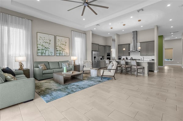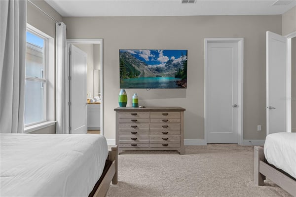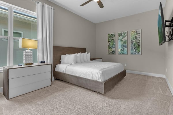 Discover the pinnacle of luxury living in this magnificent six-bedroom, six full bathroom, and three half bath home, nestled on a sought-after corner lot in the prestigious Bears Den community of the renowned Reunion Resort and Golf Club. This exceptional residence is designed to provide an unforgettable getaway for up to 12 guests, offering unparalleled comfort, style, and sophistication. As you enter the grand double-height foyer, you'll be greeted by a flood of natural light that highlights the spaciousness and elegance of the home. The expansive open-concept layout seamlessly integrates the living, dining, and kitchen areas, creating an inviting atmosphere that's perfect for both relaxing and entertaining. Beautiful neutral tones and chic, contemporary decor define this stunning space, ensuring a serene and modern aesthetic throughout. Relax in the generously sized sectional sofa, strategically positioned to enjoy the wall-mounted TV or the calming views of the pool area through large patio doors. The heart of the home is the chef-inspired kitchen, featuring sleek countertops, a spacious standalone island, and a convenient walk-in pantry ideal for both culinary enthusiasts and casual home cooks. Enjoy morning coffee at the four-seat breakfast bar or gather around the elegant dining table for memorable meals with family and friends. On the first floor, you'll find two beautifully appointed bedrooms. The front king suite boasts an ensuite bathroom with a luxurious shower, while the rear King bedroom offers easy access to a shared bathroom with a shower. Upstairs, the expansive second floor features the luxurious king primary suite, complete with a private balcony that overlooks the pool area a perfect retreat for relaxation. The primary bathroom is a true sanctuary, with dual vanities, a walk-in shower, a standalone tub, and a large walk-in closet. Another king bedroom with an ensuite shower bathroom and a suite with two queen beds featuring its own ensuite bathroom provides additional comfort and privacy for guests. The last bedroom has been tastefully furnished with a queen bed also featuring an en-suite bathroom. The open-plan loft area offers even more entertainment space, featuring a second TV lounge, shuffleboard, and a giant wall-mounted Scrabble board for hours of family fun. Movie lovers will appreciate the dedicated theater room, complete with oversized reclining tiered seating, a large screen, projector, and surround sound ideal for an immersive cinematic experience. Step outside into your private outdoor oasis, where luxury living continues. Relax on the sun-drenched paved deck surrounding the sparkling pool and rejuvenating spa, perfect for leisurely dips or unwinding under the sun. Fire up the grill in the summer kitchen and enjoy alfresco dining in the covered outdoor space, or sip cocktails as you take in the beautiful surroundings. This remarkable home offers the perfect blend of luxury, comfort, and entertainment. Whether you're looking for a peaceful retreat or an exciting getaway with friends and family, this stunning sanctuary has it all. Your dream vacation home awaits.