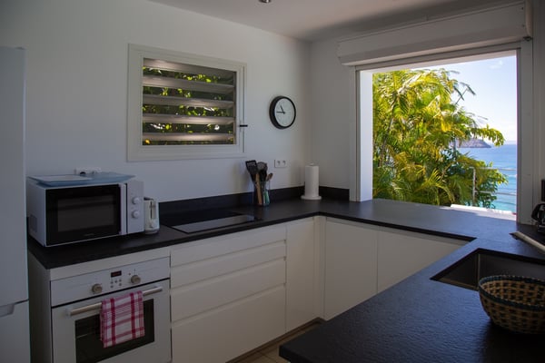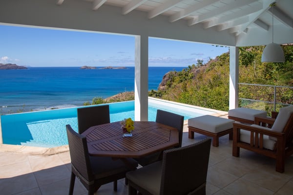 The house was perfect, the view spectacular. RE met us at the airport and lead us to the rental. They had left some welcome gifts of Champagne and French pasties. The house was well stocked, clean ... perfect. RE called every midmorning to see if everything was going well and followed it up with an email of things to do on island. They fell short when I emailed them: they didn't reply. The few drawbacks were construction on the property next door, road noise from below, and, not getting sun all day, the unheated pool was a bit cold.