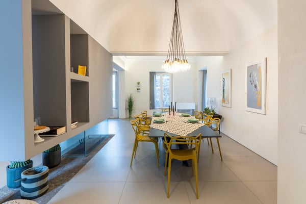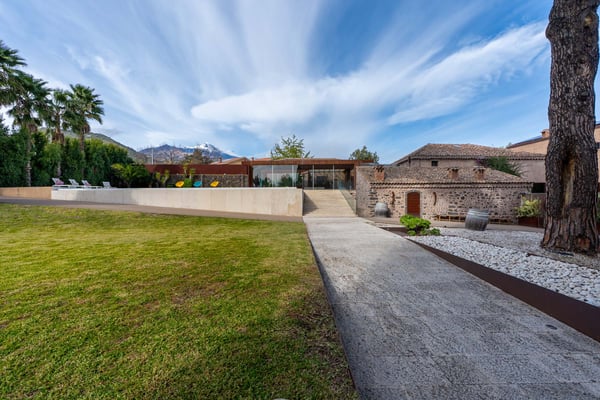 Set in the DOC wine region on the slopes of Mount Etna, and approximately 20 km north of Catania, the second largest city of Sicily, Villa Maude offers the ideal balance between the sea and the countryside, the traditional and the modern. Located in an area of great natural beauty, this newly restored independent villa is a haven of calm and serenity. Crossing its gates you will think the time here stopped a while ago. The façade of the property remains in fact unchanged retaining the structure of a typical wine making facility. The interiors have been completely renovated with a contemporary eye, and this juxtaposition creates a nice and dramatic contrast. This three-story villa can accommodate a total of 8 guests. CIN: IT087053C27RMQWU8V