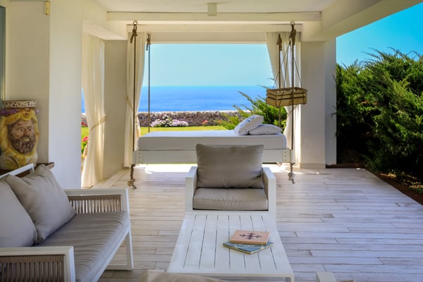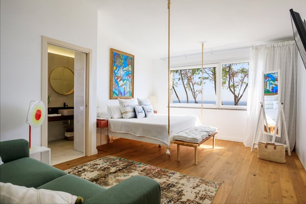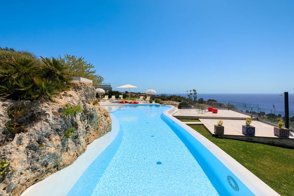 Delphina is an exceptional elegant villa, built on two floors, located in a protected natural reserve, only few miles from Siracusa. It has the Mediterranean Sea as a backdrop with the majestic and soothing views of its waters. The villa’s contemporary decor has been inspired by the sea and the vegetation surrounding the villa. The color scheme of blues and white, reminiscent of the beach, the whimsical art, and the serene nautical theme adopted throughout, make this villa feel like your personal sanctuary. CIN: IT089017C242DMBFHM
