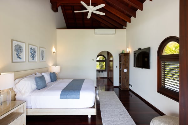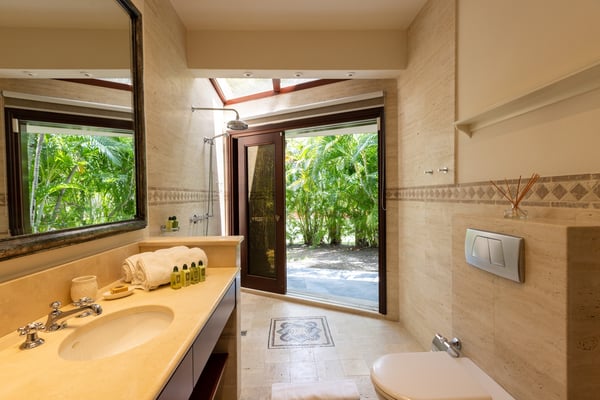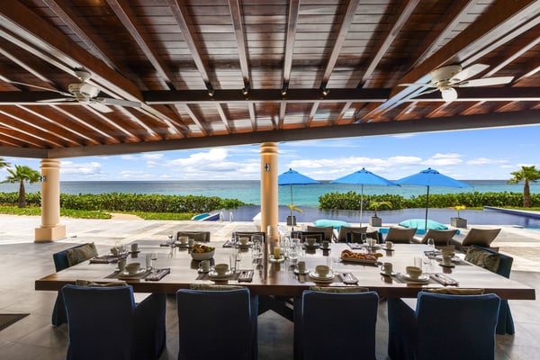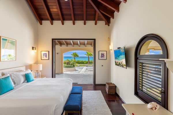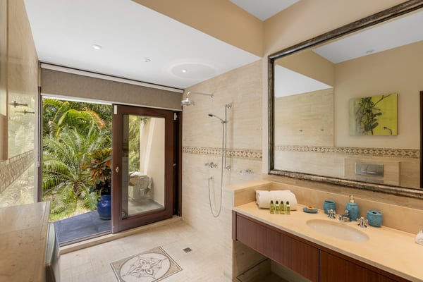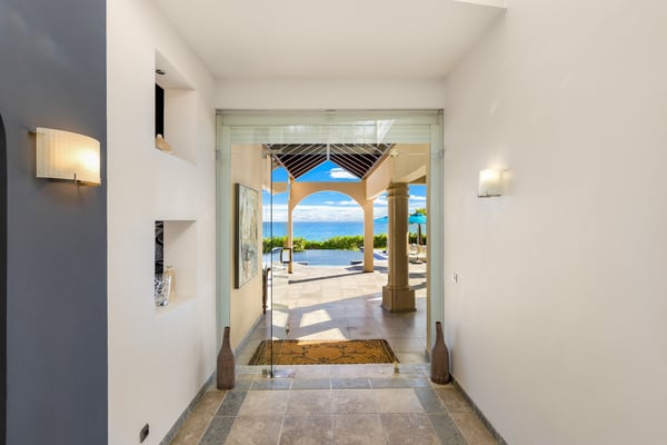 As you step through the front door of Villa Casa de la Playa, you'll be greeted by a breathtaking view of the pool and the blue of the Caribbean Sea beyond. The open and spacious layout of the villa allows for seamless indoor-outdoor living, immersing you in the beauty of the surroundings. The large gourmet kitchen, attached to the Great Room, is a chef's dream. Guests may choose to enjoy the villa with or without chef service, depending on their preference. The in-house Chef prepares three meals per day: breakfast, lunch, and dinner - cost of food and beverages additional. The five bedrooms in Villa Casa de la Playa are strategically laid out to offer beach views and privacy. Each bedroom has its own private access under the covered terrace, allowing you to enjoy the stunning scenery at any time. The primary bedroom, located separately from the Great Room, features an en-suite bathroom with a soaking tub and a spacious rain shower, creating a tranquil oasis for relaxation. The other four bedrooms are split into two sets of two on either side of the Great Room. They offer similar amenities and each has a large en-suite bathroom with views of the garden. This setup is perfect for families. Villa Casa de la Playa is designed to provide both luxury and comfort, making it an ideal choice for families or groups of friends. Enjoy the stunning views, indulge in gourmet meals, and relax in the privacy of your own en-suite bedroom. Your stay in Villa Casa de la Playa will be an unforgettable experience in the beautiful island of St. Martin.