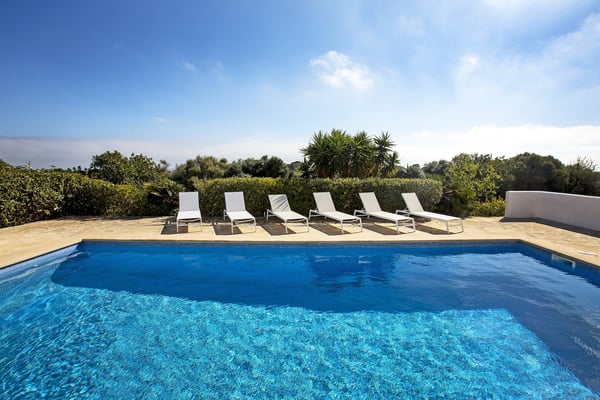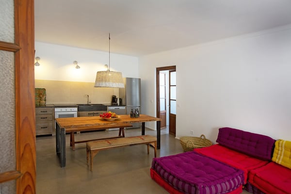 Finca Herrera is a beautifully situated property within a site of over 1 hectare between Santanyí and Cala Figuera. From the house, you have a fantastic view over the sea to the island of Caprera, Cala Figuera, the Mondragó nature reserve, and all the way to the mountains around the monastery of Sant Salvador. The Finca is about 900 meters from the sea (as the crow flies). From the Finca, you can reach the beautiful coves and beaches of the southeast coast in a few minutes by bike, Santanyí and Cala Figuera can be reached by car within 5 minutes. Fully refurbished in 2018, the two-story Finca has been divided into two apartments, each boasting a kitchen and living room. In total, there are four bedrooms, with two bedrooms situated in each apartment. The property features multiple distinct terraces, some of which are covered, and the standout is the expansive rooftop terrace. Surrounding the 10m x 5m swimming pool is yet another inviting terrace space. Equipped with essential amenities such as TV, Wi-Fi internet, washing machine, dishwasher, fireplace, underfloor heating, iPod docking station, fans, barbecue, and covered patio, you'll quickly acclimate and feel perfectly at home. Discover the tranquility of Cala Figuera, a serene fishing village where you can savor the offerings of waterfront restaurants, cafes, and shops. Stroll along the peaceful streets, gaze over the cliffs at sunset, and indulge in leisurely days observing the world go by. Just a short drive from Santanyi, Finca Herrera provides proximity to a diverse array of dining options and cafes. Explore the vibrant weekly market and marvel at the architectural beauty shaped by centuries of historical influences, from the Romans to pirates. License Number ETV/12043