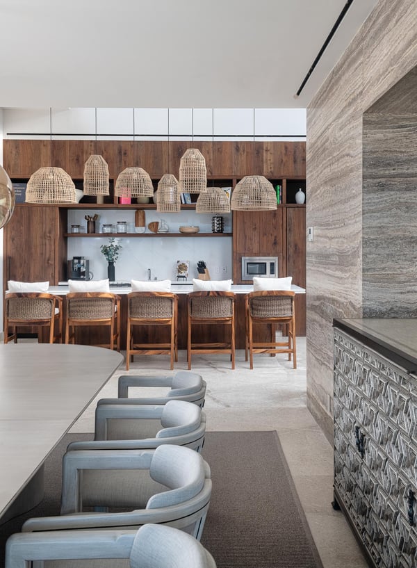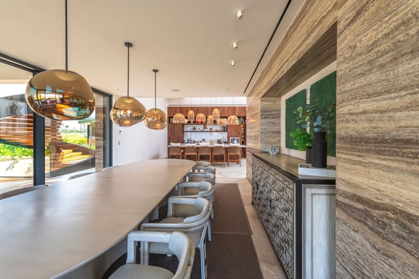 The Premier Golf Membership grants access to Pacifico Golf Course ($), Bahia Golf Course ($), the Tennis Centre ($), the Fitness Center ($), El Surf Club based on min. consumption fee ($), St.Regis Beach Club based on availability and min. consumption fee ($), Pacifico Beach Club, Sufí Ocean Club and Kupuri Beach Club ($). Contact one of our Villa Specialists for more information. Discover the epitome of luxury living at this exceptional 9-bedroom estate in Pacifico Estates, Punta Mita. Perched in-front of the golf course, it offers panoramic ocean views, including the renowned Tail of the Whale golf hole, this home promises an extraordinary experience. The expansive layout includes a pool with jacuzzi, 19th hole entertainment space, a fully outfitted gym, and even an elevator to ensure easy access to every corner of the property. Designed for entertainment, the estate boasts a state-of-the-art media room and a game room perfect for relaxation or fun-filled evenings. For larger gatherings, the estate can be paired with the neighboring property for special events. With spacious outdoor areas for al fresco dining and lounging, this estate provides an exclusive retreat while also being close to Punta Mita’s renowned beaches, golf courses, and fine dining.