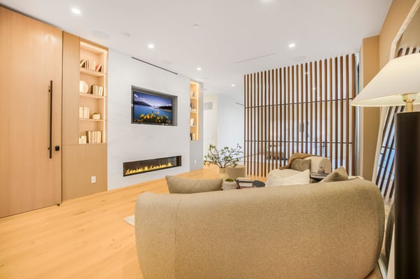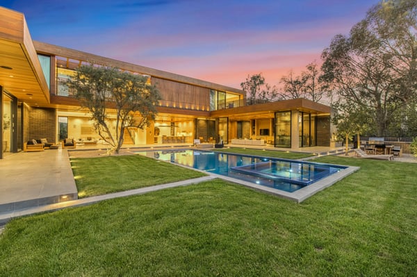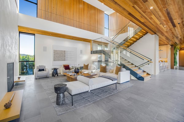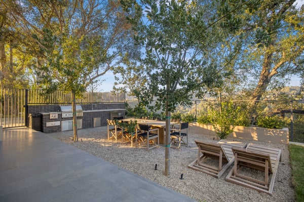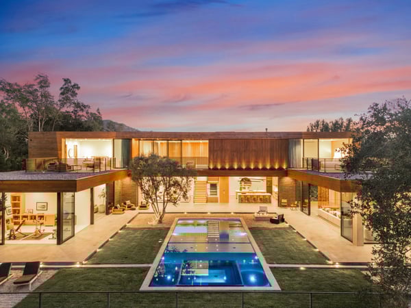 This stunning new architectural gem, designed by the acclaimed Noah Walker, sets a new standard for luxury living. Nestled behind the prestigious gates of Oak Pass Road in Beverly Hills, this ultra-private estate offers a rare combination of seclusion and grandeur. Spanning across an expansive floor plan, the home features 5 spacious bedrooms and 9 lavish bathrooms, perfect for both intimate living and large-scale entertaining. The journey begins through an impressive glass pivot door, greeted by a 10-foot indoor greenery wall, elegant brick-clad columns, and soaring hardwood ceilings. The state-of-the-art kitchen is a chef's dream, with dual marble islands, oak cabinetry, top-of-the-line Wolf and Sub-Zero appliances, and two Miele coffee makers. The kitchen seamlessly flows into the dramatic two-story living area, complete with a custom floating staircase that connects all levels of this architectural wonder. Designed to blend indoor and outdoor living, the home boasts 50-foot Fleetwood pocket doors that open to the meticulously landscaped grounds, featuring a zero-edge pool and spa, an outdoor kitchen, fire pit, olive trees, and multiple lounging areas all set against breathtaking panoramic views. First-class amenities include a private movie theatre, a fully equipped gym, a Himalayan salt sauna, dual steam showers, a temperature-controlled wine display, three private balconies, and a Crestron smart home system. The motor-court, lined with mature oak trees, adds the finishing touch to this one-of-a-kind estate. This extraordinary residence offers an unmatched level of sophistication, set in one of the most exclusive locations in Beverly Hills. An unparalleled opportunity for those seeking ultimate luxury. HSR25-002760