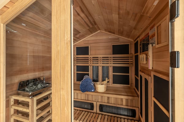 Unwind in your private wooden sauna, where warm cedar surrounds you and soft towels await your relaxUnwind in your private wooden sauna, where warm cedar surrounds you and soft towels await your relax