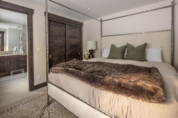 Sink into luxury with your plush king bed overlooking snowy mountain views, complete with cozy faux Sink into luxury with your plush king bed overlooking snowy mountain views, complete with cozy faux