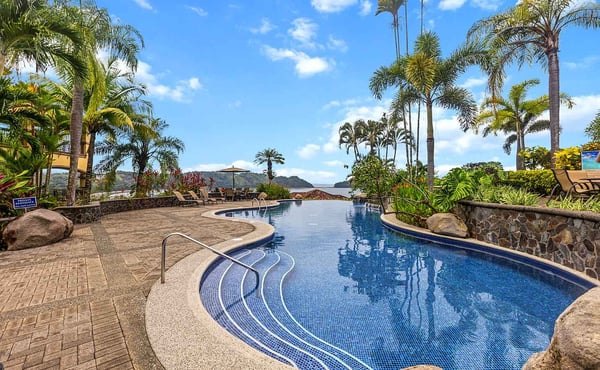 The unique combination of hardwood cabinetry and accents, wrought iron detailing and imported ceramic tile creates a rustically elegant interior reminiscent of colonial times. Yet the subtle, warm tones used in the interior finishes ensure that the spectacular ocean view remains the focal point of each room. The visual effect of the tropical-colonial facade set against Marbella's rainforest backdrop can only be described as stunning, while the stonework, water features and exotic landscaping blend harmoniously with the natural surroundings. With only two three bedroom, three and a half bathroom units per floor and 3,400 square feet of living space, Marbella's luxury residences offer the utmost in privacy and comfort.