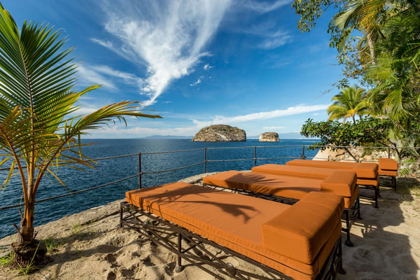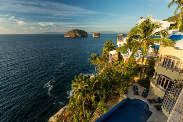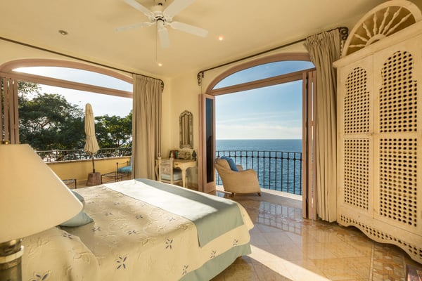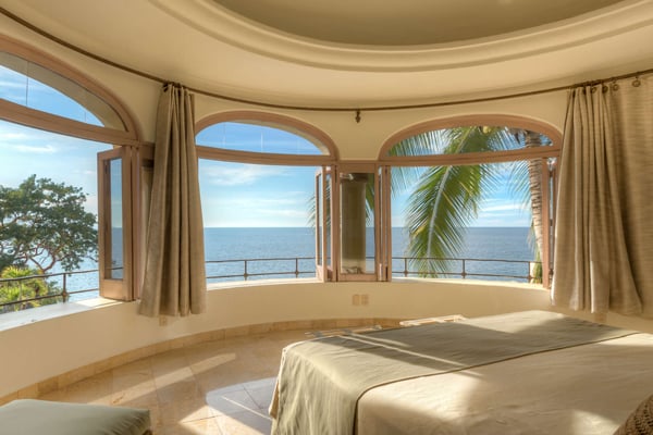 Villa Luna Creciente is located on the hillside of Puerto Vallarta’s south shore. The villa has large glass doors that open up the indoor living space to the terrace and infinity pool for unobstructed ocean views. Due to the location of the villa, Internet can be slow or unreliable and is only available in the living room area