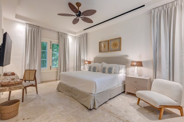 Guests staying within Puntacana Resort & Club will have access to all resort amenities and facilities. Resort amenities and facilities include two golf courses ($), two beach clubs ($), Six Senses Spa ($), restaurants ($), bars ($) and tennis centre ($). Welcome to Corales 49, a stunning 7-bedroom retreat where relaxation meets elegance. Nestled within lush tropical gardens, this coastal sanctuary offers breathtaking ocean views and a serene atmosphere. The villa's classic boho decor creates a soothing ambiance, blending natural textures with timeless style. With spacious living areas, an expansive outdoor terrace, and tranquil gardens, Corales 49 is the perfect escape for those seeking luxury and relaxation in a beautiful oceanview setting. Experience elegance and peace in this unforgettable paradise.
