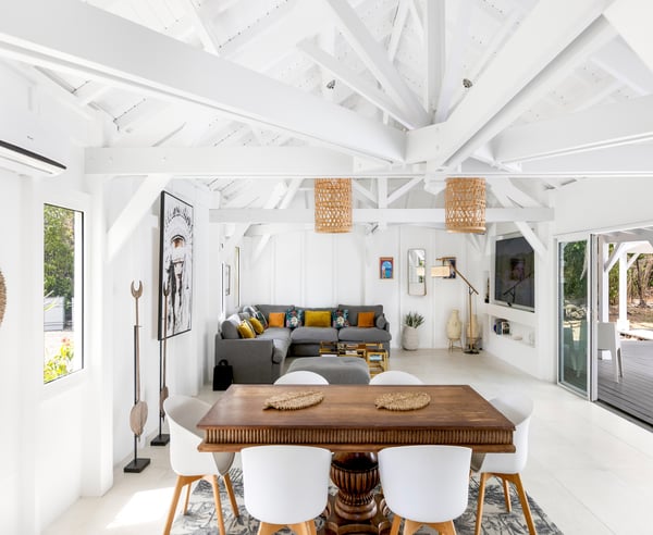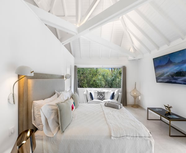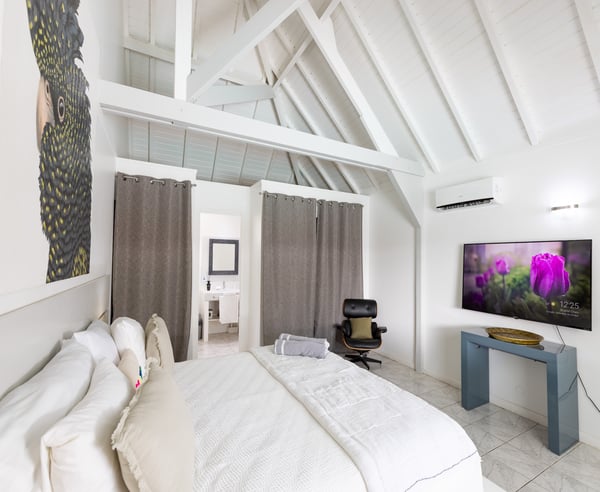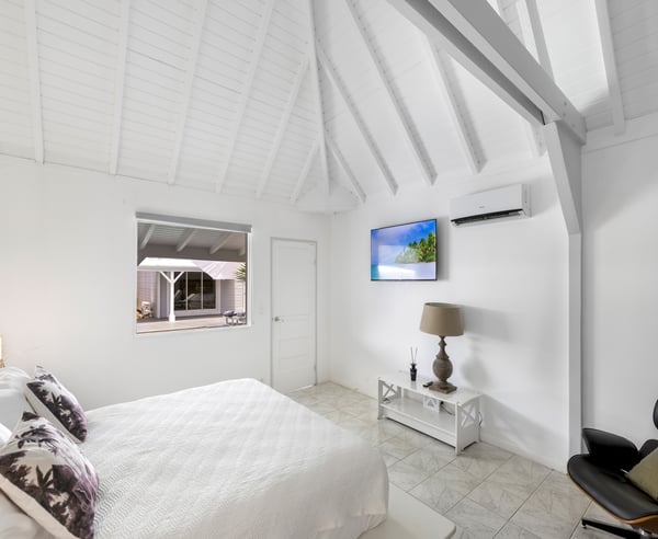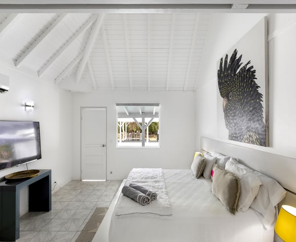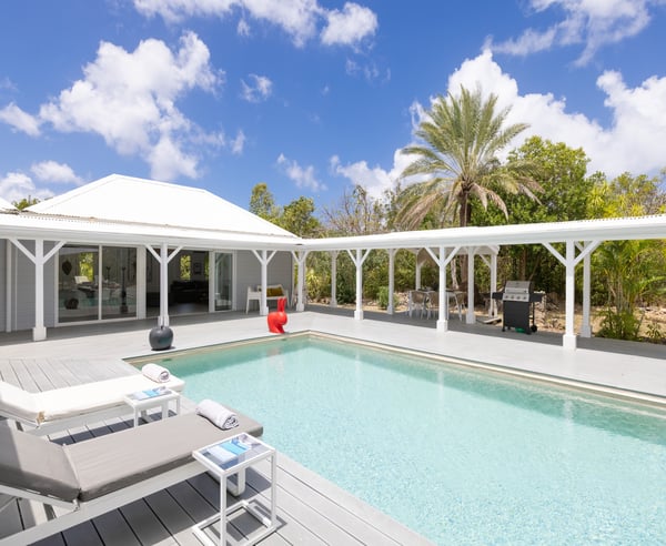 Villa Greystone in St Martin ultra private Caribbean retreat, in five minutes by car to Plum Bay. Villa Greystone sounds like a luxurious and tranquil vacation home located in St. Martin, perfect for those seeking privacy and relaxation. Built-in the traditional French Caribbean style, the villa is situated in a tropical garden that provides complete seclusion. The villa's bungalows surround a large swimming pool, which is sure to be a highlight of any stay. The living area and fully equipped kitchen are located in a separate bungalow that is fully air-conditioned and furnished with comfortable, plush furniture. The primary bedroom and two additional bedrooms are located in separate bungalows, each opening up to the pool and terrace. This layout ensures maximum privacy for each guest and allows everyone to fully enjoy the beautiful surroundings. Whether you are traveling with a small group of friends or as a family, Villa Greystone can accommodate your needs. The villa can be rented as a two or three bedroom retreat, ensuring that you have plenty of space to relax and unwind during your stay in St. Martin.