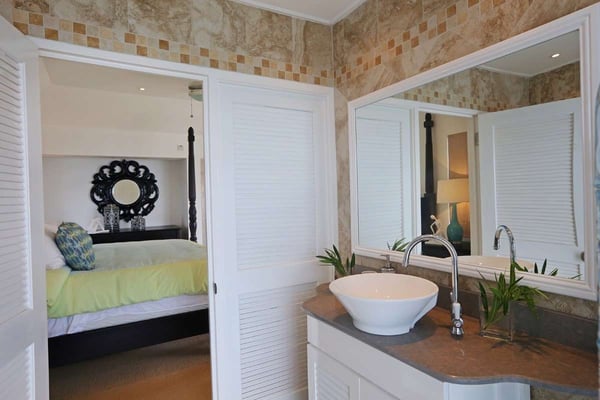 Equinox Villa is a private retreat in Sea Breeze Hills, Cap Estate, with unobstructed views of the Caribbean Sea and the French island of Martinique across the channel. The villa is set against the bluffs of the most northern part of Saint Lucia, and enjoys fresh sea breezes, pure tropical light and a sense of peace among the elements. Below the property, a short adventure trail takes you down to the seafront, where it is a wonder to watch the surf roll in and the tide pools fill up. The villa is designed to allow guests communal and private retreat spaces. Off the air-conditioned, en suite master bedroom, located in the right wing of the villa, is a private garden area and plunge pool, perfect for honeymooning couples. The suite also features a kitchenette and offers privacy if so desired, but it adjoins more communal garden space and a pool with a swim-under bridge and swim-up bar that’s great for mingling. The sprawling villa features 3 additional air-conditioned bedrooms with en suite facilities in the left wing of the villa, furnished in a contemporary Caribbean style. The living, and dining area is open plan and opens out to lovely patio spaces. The kitchen is modern and well-appointed. Tranquillity is the defining feature of Equinox: there are areas for quiet relaxation, beautiful sunsets to contemplate, and the parade of bird and marine life over the horizon. The villa suits families and groups, as well as couples.