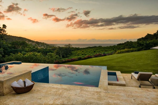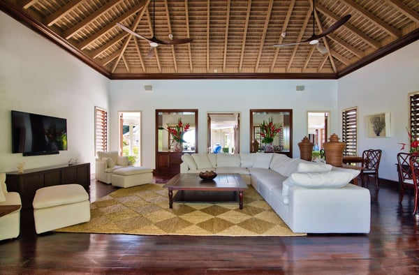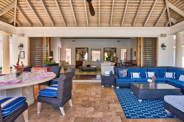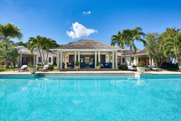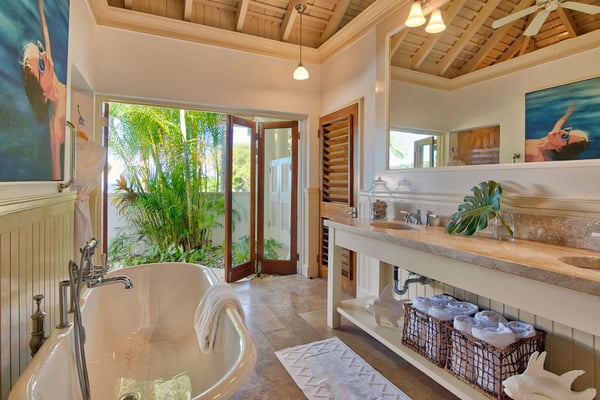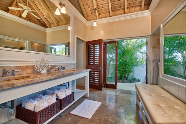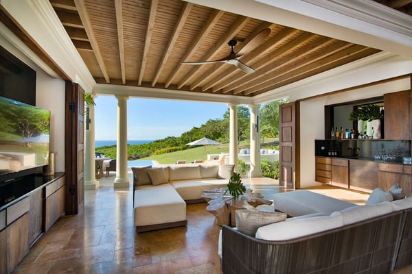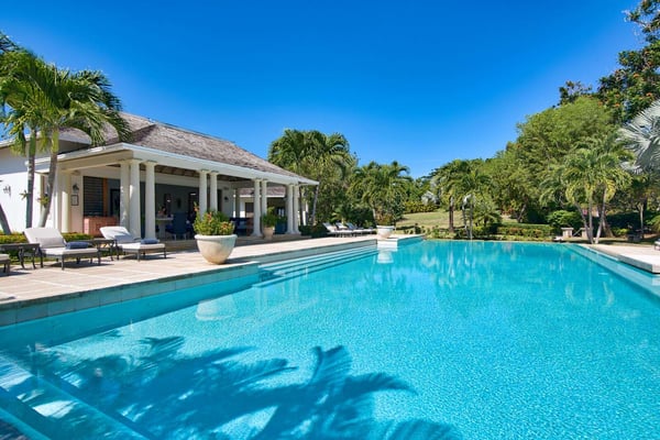 The Tryall Club requires all villa and condo guests to become members during their stay via a Temporary Membership Fee ($) (plus a 15% service charge). Children between the ages of 13 and 15 pay at a discounted rate (plus a 15% service charge). Guests can also pay per day, for guests ages 16 and older, who stay for one to four days. This can be either prepaid or upon arrival at the Club. For children 12 years of age and younger, our Temporary Memberships are complimentary. Please contact a Villa Specialist for exact pricing! Ambiance Sea Salt Villa, located on four acres of tropical paradise along Mahogany Drive, offers stunning views of the Jamaican coastline and Caribbean Sea. This villa blends stylish design, lush gardens, and world-class service for an unforgettable stay. Ideal for families or groups, it provides a peaceful retreat with seamless indoor to outdoor living. Courtyards and coral-stone walkways connect the villa to its vibrant gardens, and a calming fountain greets you upon entry. The newly renovated west wing features a sophisticated bar and media lounge, while the saltwater spa and plunge pool offer soothing relaxation. In the evening, enjoy sunset cocktails around the fire table or dine al fresco on the coral-stone deck. The spacious great room, with plush sofas and a 75″ TV, flows onto a grand veranda overlooking a large saltwater pool, perfect for water volleyball and basketball. The pool area also includes a shuffleboard court and a 1,500-square-foot putting green for friendly competition. The dining pavilion, surrounded by orchid gardens, opens to the refreshing Caribbean breeze. The six luxurious bedroom suites feature natural stone and open to private outdoor areas. Four suites have outdoor showers, while two family-friendly bathrooms offer soaking tubs with connecting bedrooms.