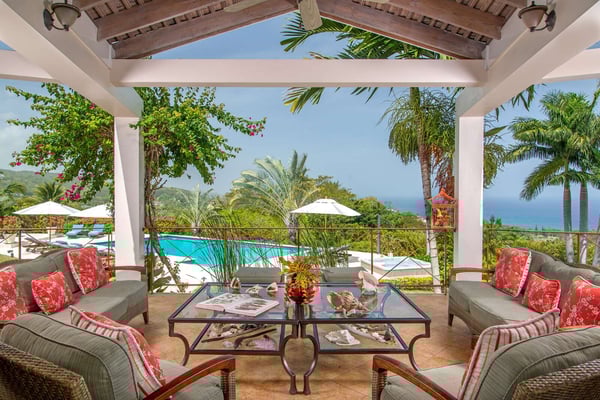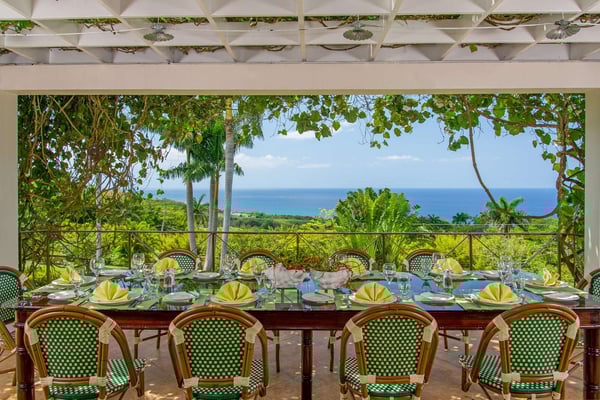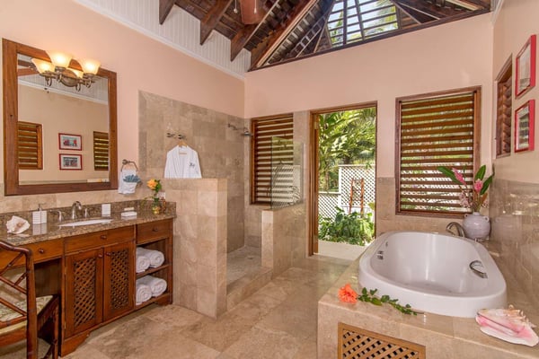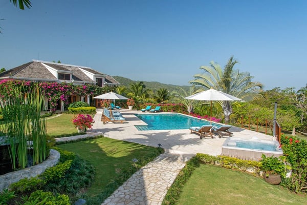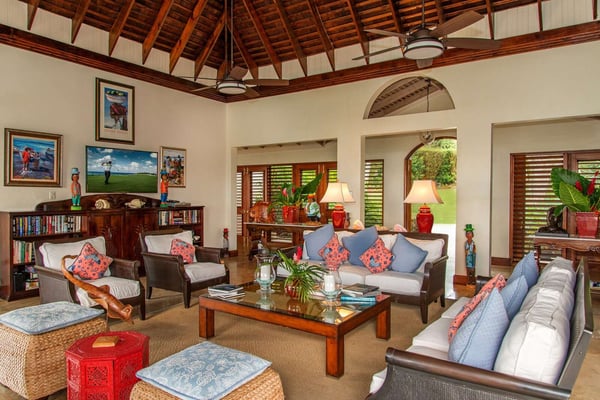 The Tryall Club requires all villa and condo guests to become members during their stay via a Temporary Membership Fee ($) (plus a 15% service charge). Children between the ages of 13 and 15 pay at a discounted rate (plus a 15% service charge). Guests can also pay per day, for guests ages 16 and older, who stay for one to four days. This can be either prepaid or upon arrival at the Club. For children 12 years of age and younger, our Temporary Memberships are complimentary. Please contact a Villa Specialist for exact pricing! Sugar Hill is an extraordinary 8-bedroom luxury home, ideally suited for multi-generational families or friends. Perched on a lush 3-acre estate, it offers spectacular views of the Caribbean Sea aswell as the scenic Hanover Hills. This Jamaican plantation-style villa consists of a 4-bedroom Main Villa and a 4-bedroom Guest House, surrounded by lush gardens, expansive lawns, and tropical trees. Every room offers breathtaking sea views and verdant property. The interiors blend traditional Jamaican craftsmanship with modern comforts, featuring hand-carved mahogany furniture, original art, and granite and travertine finishes. Wireless internet is available throughout the property. The Main Villa hosts two primary suites, each with a private study, veranda, and en-suite bathroom. The Guest House features a primary suite with breathtaking views and four additional guest rooms, each with luxury en-suite bathrooms. Sugar Hill boasts spacious outdoor areas, including a heated pool, a game room, a gym, and the Zen pavilion—a peaceful retreat set in a beautiful garden with ocean and property views, perfect for yoga, meditation, and Pilates. The Tryall Club’s amenities are just a short golf cart ride away.