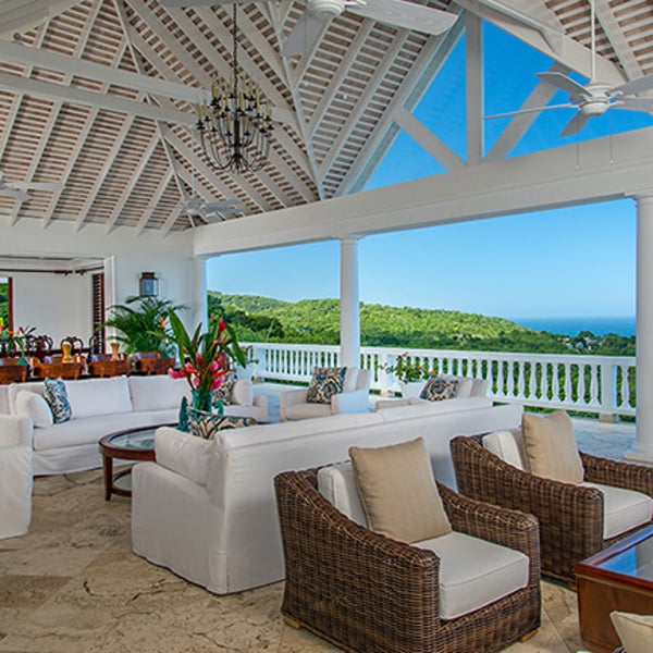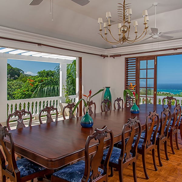 The Tryall Club requires all villa and condo guests to become members during their stay via a Temporary Membership Fee ($) (plus a 15% service charge). Children between the ages of 13 and 15 pay at a discounted rate (plus a 15% service charge). Guests can also pay per day, for guests ages 16 and older, who stay for one to four days. This can be either prepaid or upon arrival at the Club. For children 12 years of age and younger, our Temporary Memberships are complimentary. Please contact a Villa Specialist for exact pricing! Villa Amana is Tryall’s largest and most outstanding property, including a gorgeous infinity pool, exquisite decor, and breathtaking ocean views. This 10-bedroom haven combines colonial beauty with contemporary luxury, ideal for families and parties. It has both indoor and outdoor living areas, a private gym, a children’s playground, and a cascading garden waterfall. Perched on a hillside, the villa offers panoramic ocean views so vast that you can see the curvature of the Earth at times. Lush tropical forests behind the villa create a private, serene oasis. Inside, white walls, Jamaican mahogany four-poster beds, and designer fabrics add elegance. Eight of the ten air-conditioned bedrooms are in the main villa—two upstairs (including the primary suite) and six downstairs. Two additional king bedrooms are in the west wing. Each features expansive windows, private balconies, and en-suite marble bathrooms—the primary bath is clad beautifully in white marble. The ocean-facing balcony is perfect for entertaining, hosting up to 50 guests for cocktails. A formal dining room seats 20, while the outdoor dining space offers spectacular views. The spacious living room has plush seating, a grand piano, and floor-to-ceiling openings for fresh ocean breezes. Enjoy the infinity pool, poolside bar, and luxurious loungers outdoors. Kids love the playground and basketball court, while adults can stay active in the gym or play pool on the upper veranda. Villa Amana is the ultimate Caribbean retreat for luxury, comfort, and unforgettable experiences.
