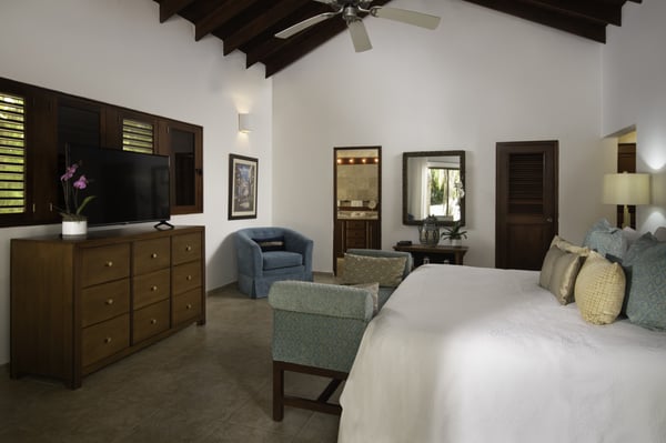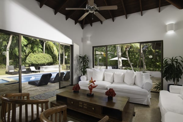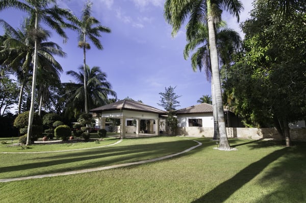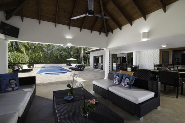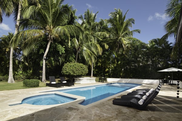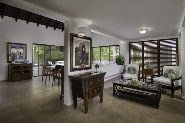 All guests must register with the Casa de Campo Concierge office, and for a small daily fee ($30 per adult per night & $15 per child per night), are granted access to resort areas and amenities. Casa de Campo Resort facilities and amenities include golf courses ($), the fitness centre ($), racquet center ($), restaurants ($) and bars ($). Contact Rental Escapes for more information about pricing. Nestled amongst palm trees and tropical flowers, this one-story villa has been cleverly designed to introduce elements of the beautiful outdoor surroundings into the airy interior spaces. This exclusive corner of paradise features spacious living areas, an outdoor pool and hot tub, and a shaded gazebo. Additionally, Minitas Beach is a quick five-minute trip away by golf cart.
