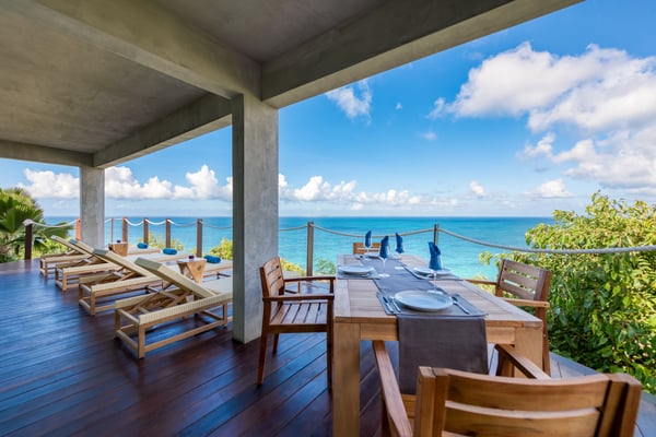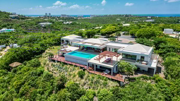 Nestled on the picturesque island of Saint Martin in the Caribbean, Amandara stands as a testament to luxury, elegance, and tranquility. This magnificent 5-bedroom villa is a paradisiacal haven that offers an unparalleled experience of tropical living. From its stunning architecture to its breathtaking views of the azure Caribbean Sea, Amandara beckons travelers seeking the ultimate in relaxation and indulgence. Amandara is a true architectural gem, seamlessly blending modern aesthetics with the island's natural beauty. The villa's exterior features sleek lines, lush landscaping, and a dramatic infinity-edge pool that seems to merge with the ocean beyond. The use of natural stone, wood, and glass throughout the property creates a harmonious connection between indoor and outdoor spaces. This villa boasts five spacious interiors bedrooms, each exquisitely appointed with plush furnishings, elegant décor, and private en-suite bathrooms. The master suite, in particular, is a sanctuary of comfort and style, with an ensuite private bathroom offering breathtaking ocean views and a bathtub as well as an outdoor shower. Four of the five bedrooms are on the main floor, and the fifth is in a small, private apartment on the lower level. The open-concept living and dining areas are equally impressive, with high ceilings, large windows, and chic furnishings that create an inviting atmosphere for relaxation and entertainment. When the villa is rented in full during the high season and the holiday season, you will have the privilege of having a private chef prepare delicious meals for you (3 meals per day - cost of food & drinks additional). The villa's expansive grounds are a paradise for outdoor enthusiasts. Take advantage of the volleyball and bocce courts, where you can challenge your friends and family to some fun-filled matches. These activities provide a wonderful opportunity to bask in the island's beautiful weather and enjoy friendly competitions surrounded by mature plantings and lush landscaping. A truly enchanting addition to Amandara's offerings is the "Bali" gazebo. This exotic and secluded retreat is nestled within the villa's lush gardens and offers a unique experience. Here, you can relax in an outdoor tub, surrounded by the sounds of nature and the fragrance of tropical blooms. Amandara is a lavish retreat where modern luxury meets natural beauty. It's a place where you can escape from the ordinary and immerse yourself in the extraordinary. Whether you seek relaxation, adventure, or a romantic getaway, Amandara in Saint Martin promises an experience like no other—a true paradise found.